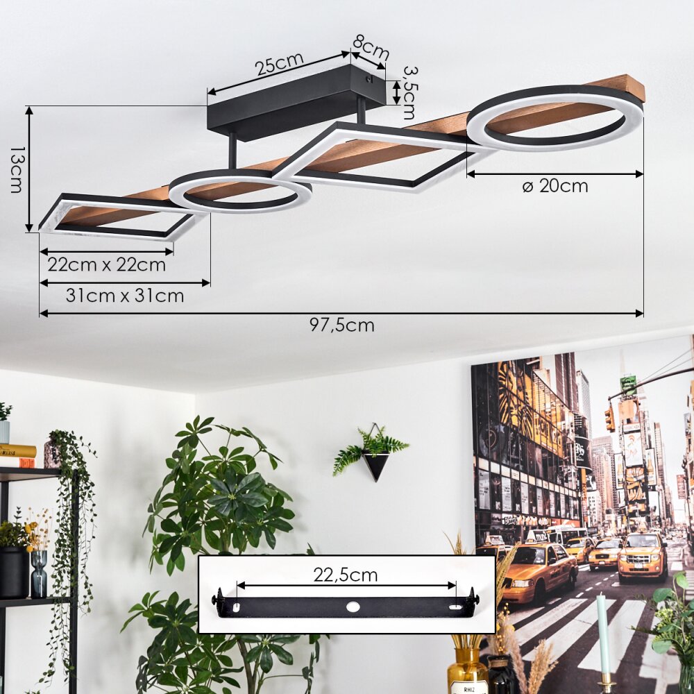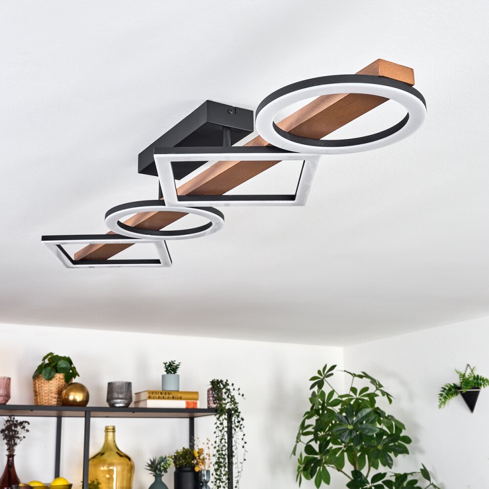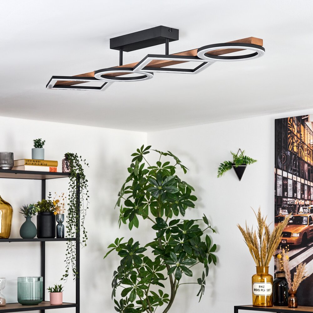 Tavon Plafondlamp LED Hout donker, Zwart, 1-licht