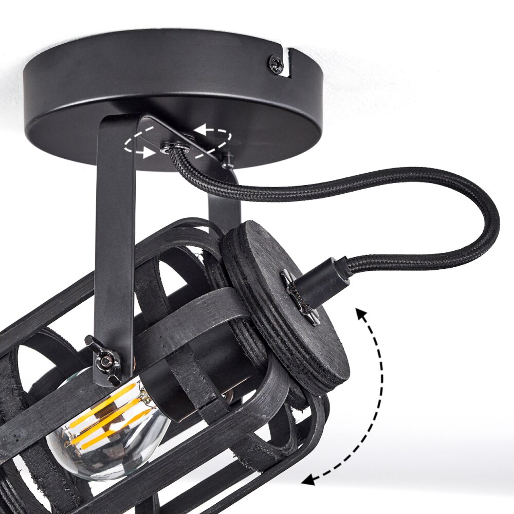 Roxa Plafondlamp Hout licht, Zwart, 3-lichts