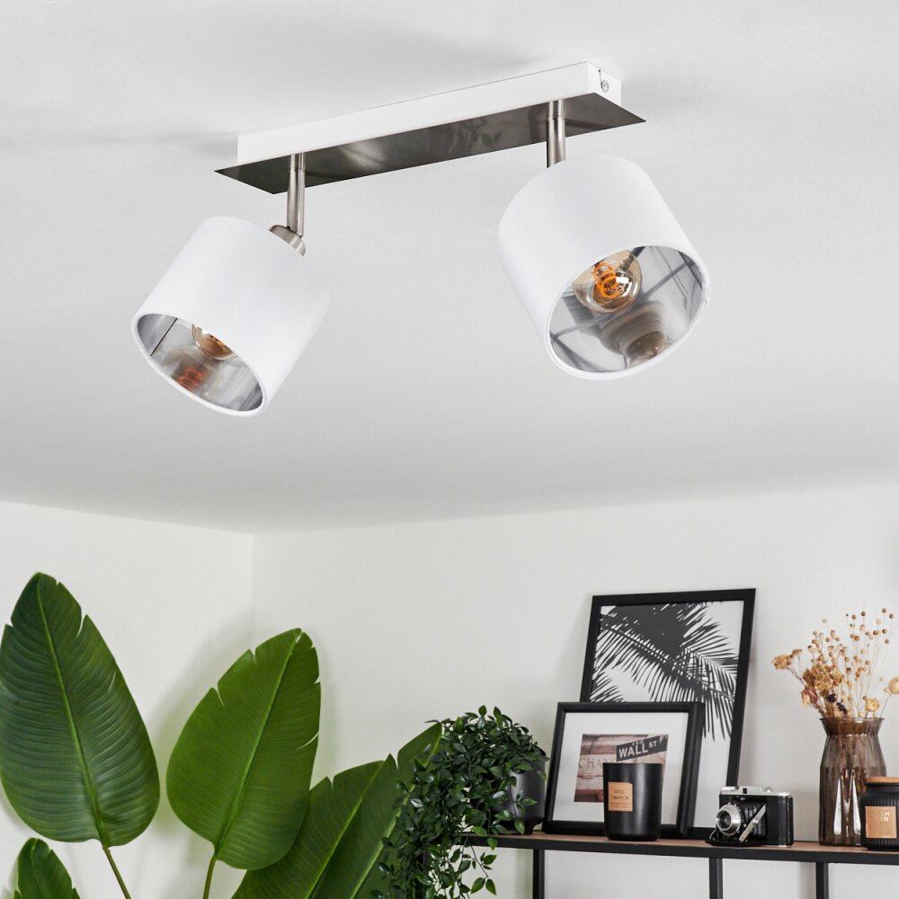 Tibro Plafondlamp Nikkel mat, Wit, 2-lichts