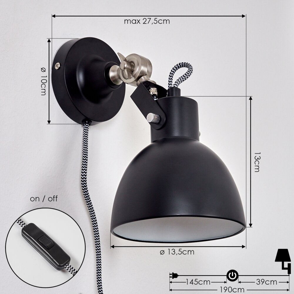 Tilton Wandlamp Nikkel mat, Zwart, 1-licht