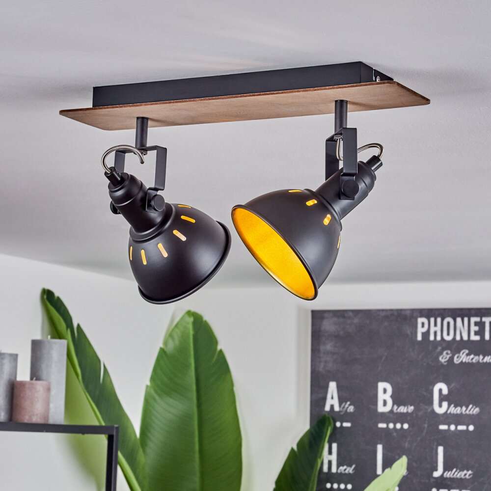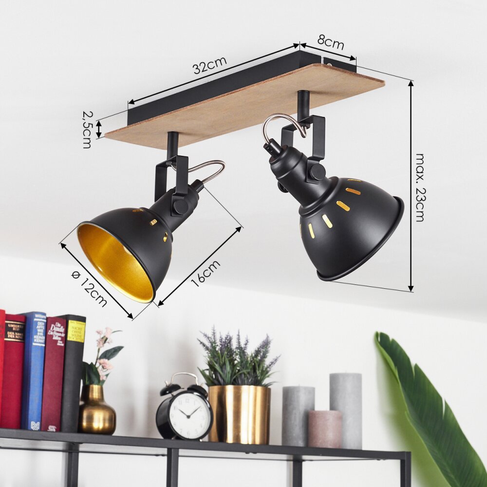 Tina Plafondlamp Hout donker, Natuurlijke kleuren, Zwart, 2-lichts
