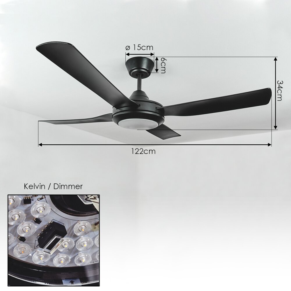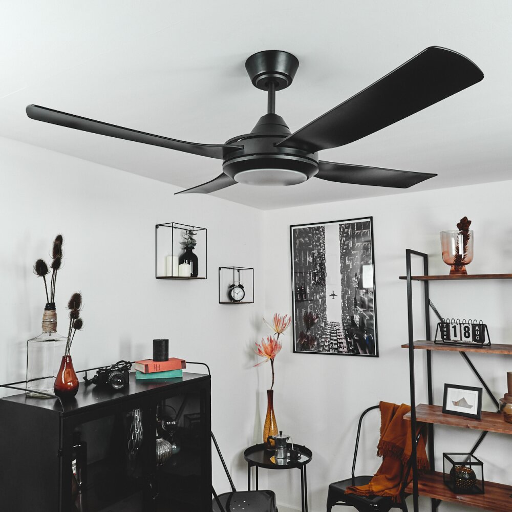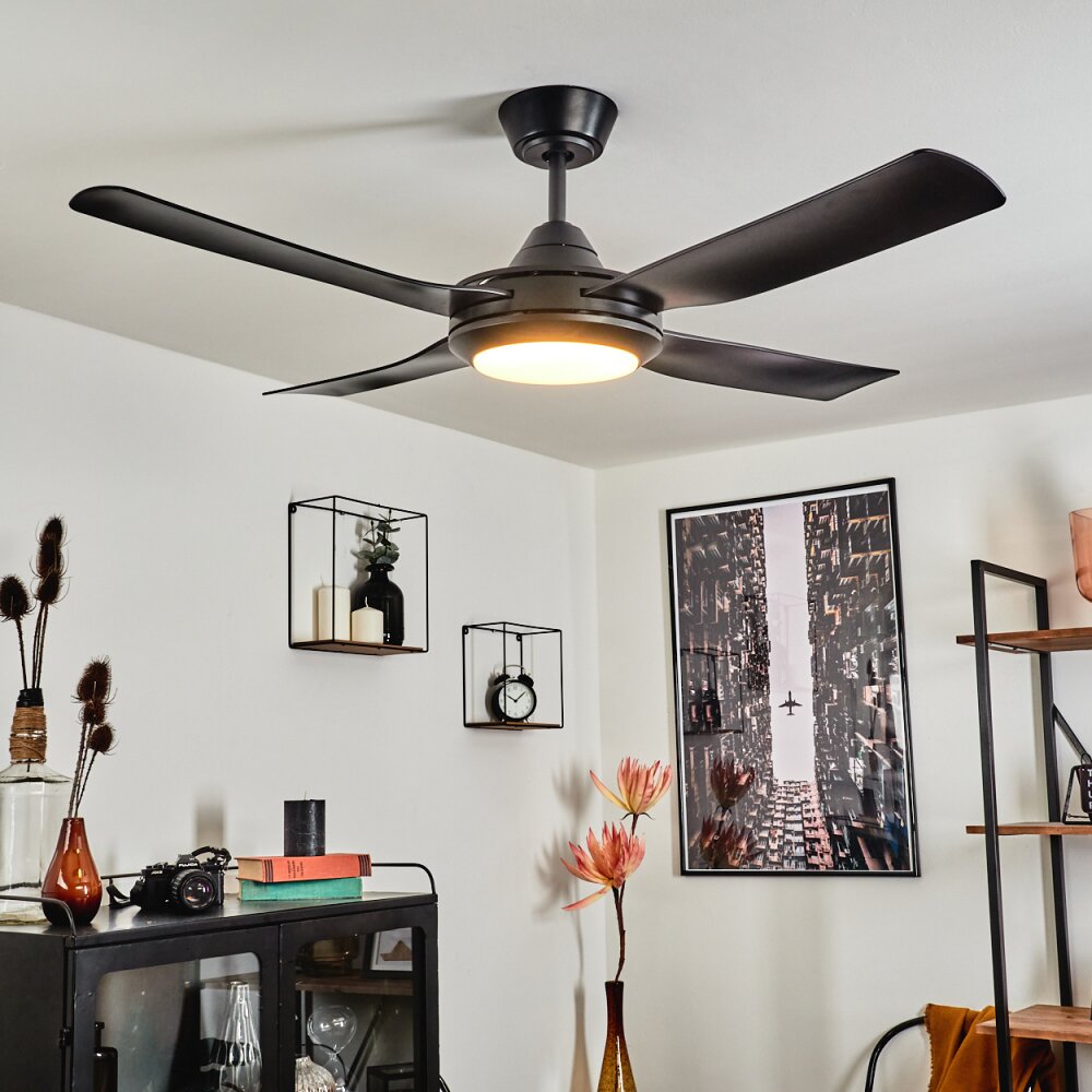Tjerne plafondventilator LED Zwart, 1-licht, Afstandsbediening
