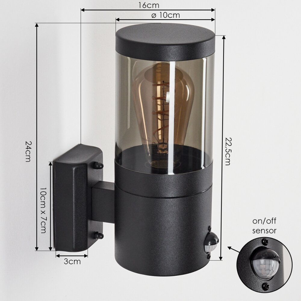 Tolsona Buiten muurverlichting Zwart, 1-licht, Bewegingsmelder