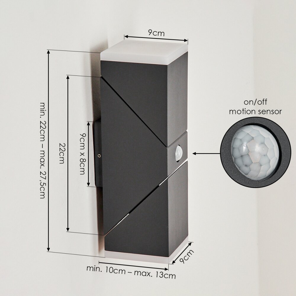 Toogong Buiten muurverlichting LED Antraciet, 2-lichts, Bewegingsmelder