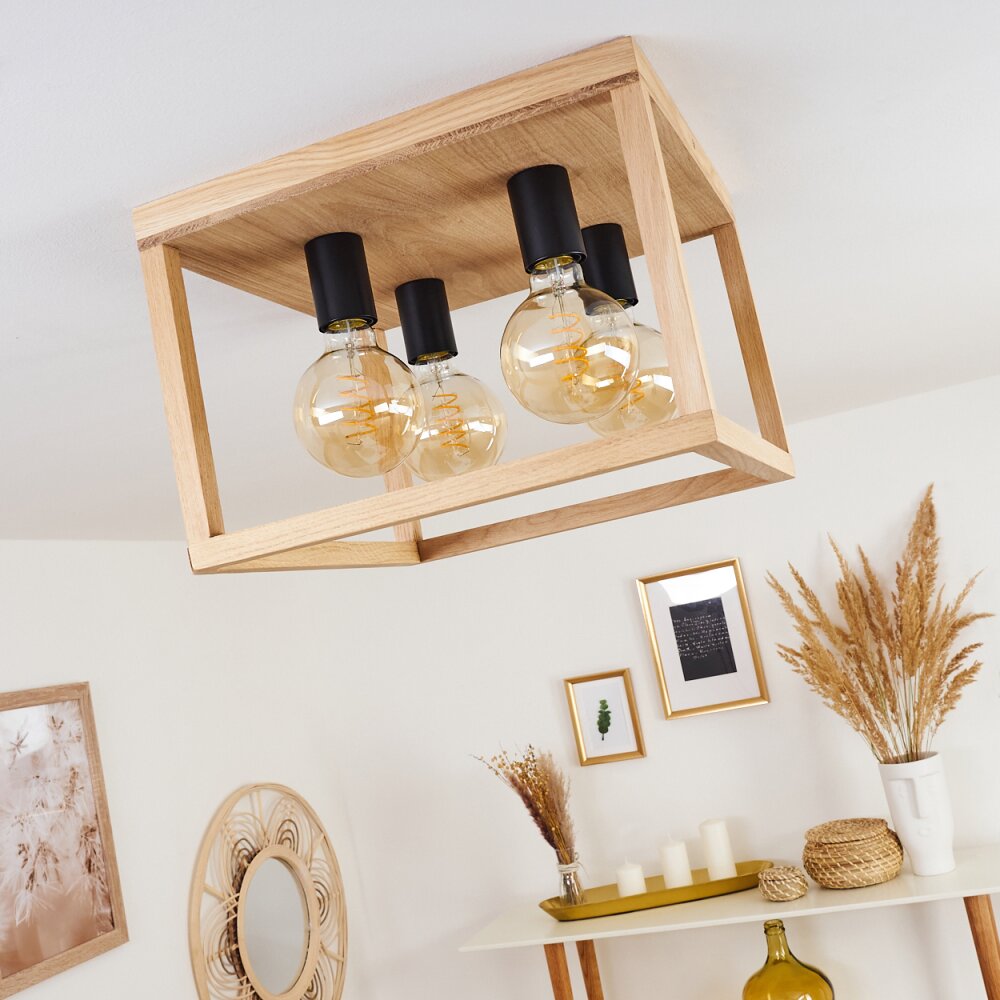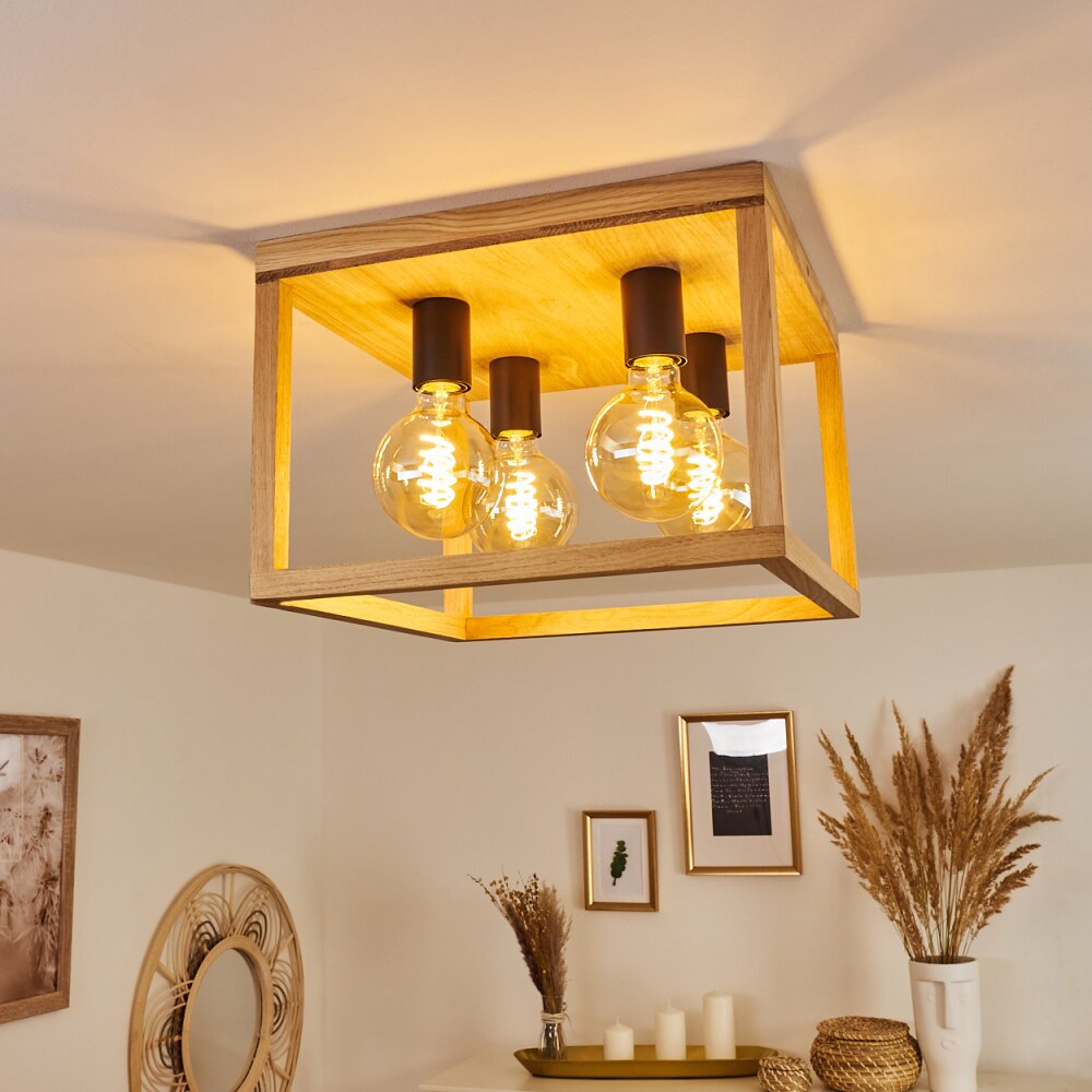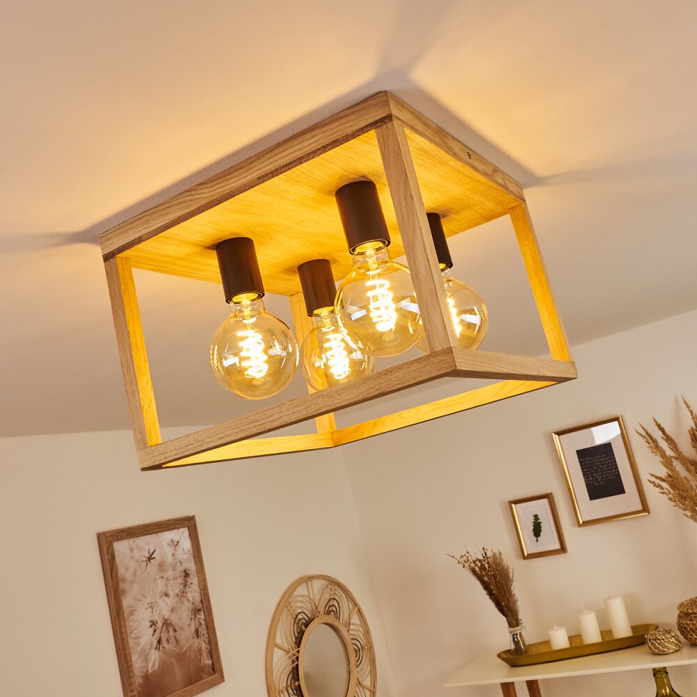Pompu Plafondlamp LED Hout licht, Zwart, 1-licht