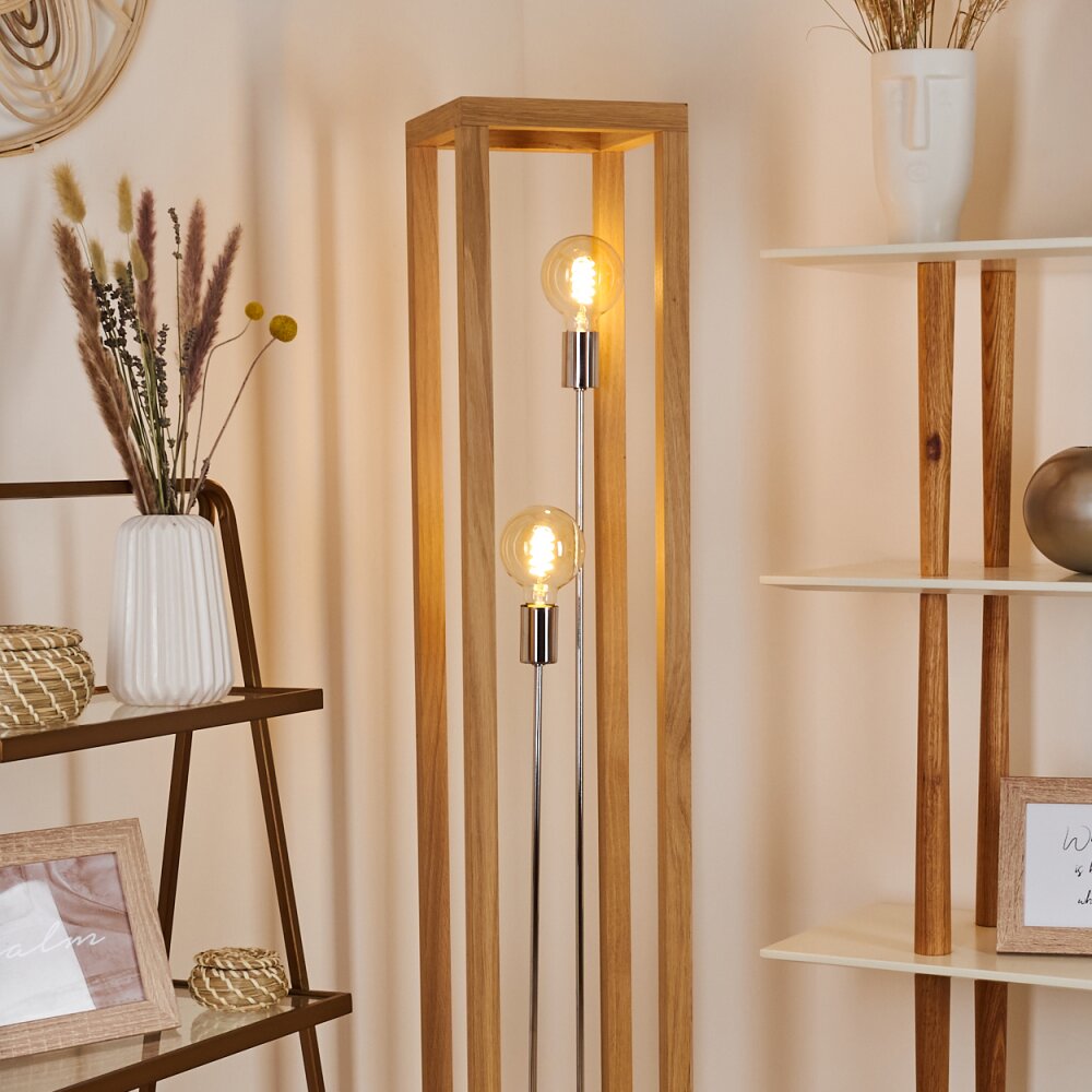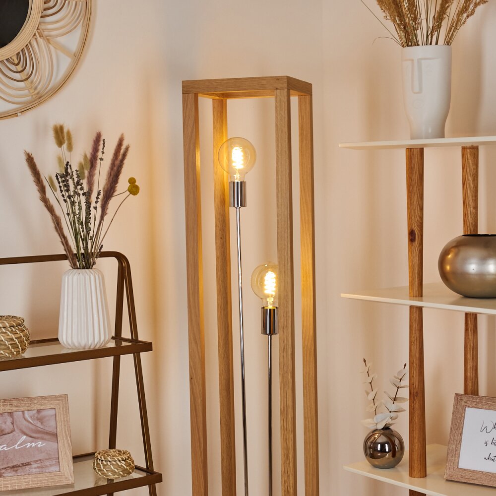 Korhola Tafellamp Bruin, Chroom, houtlook, 1-licht