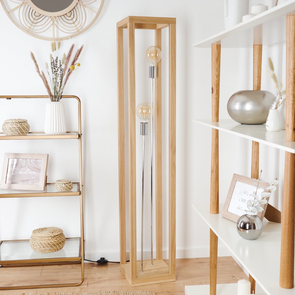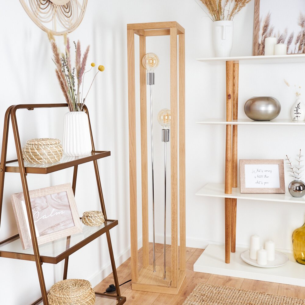 Francillon Tafellamp Bruin, Chroom, houtlook, 1-licht