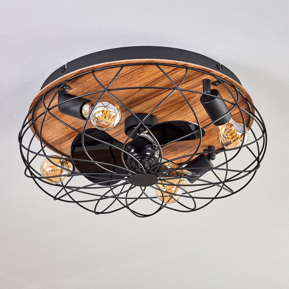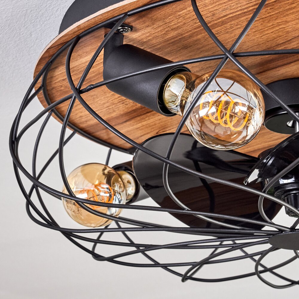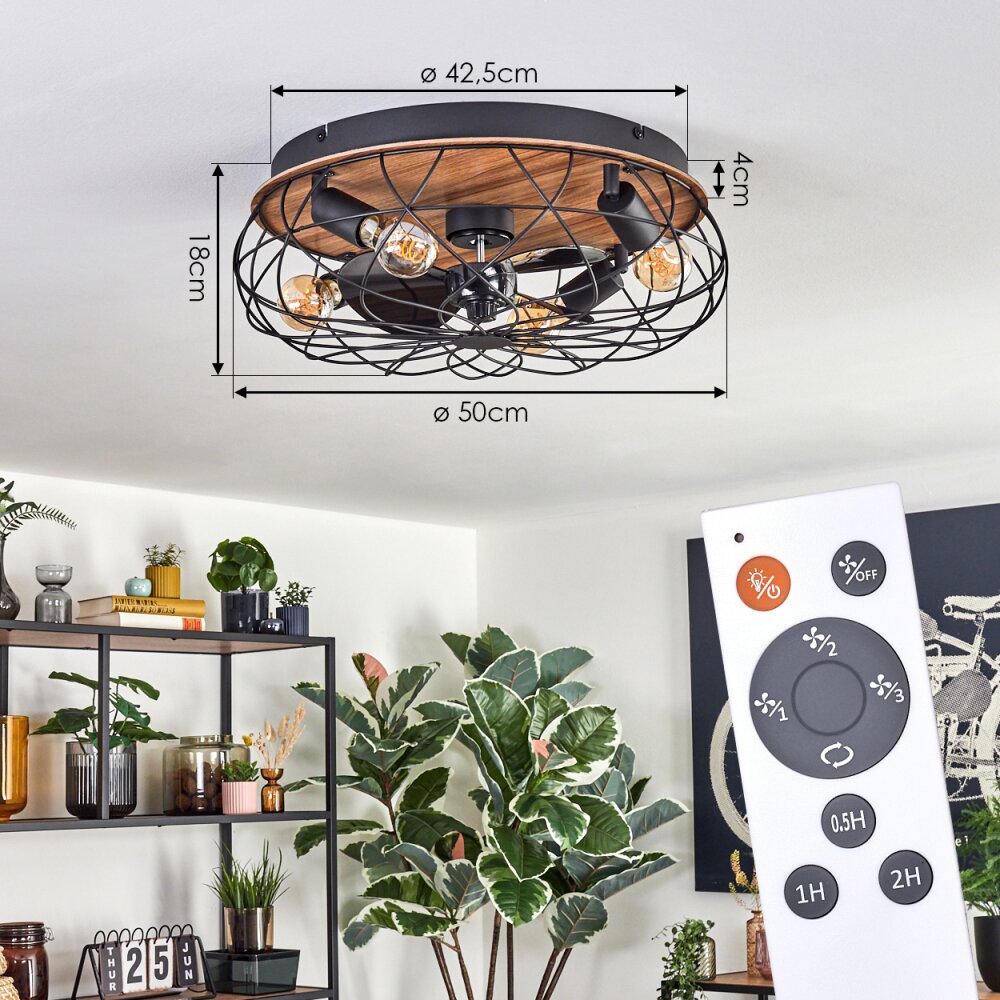 Tourais Plafondlamp, Plafondventilator met verlichting LED houtlook, Zwart, 4-lichts, Afstandsbediening