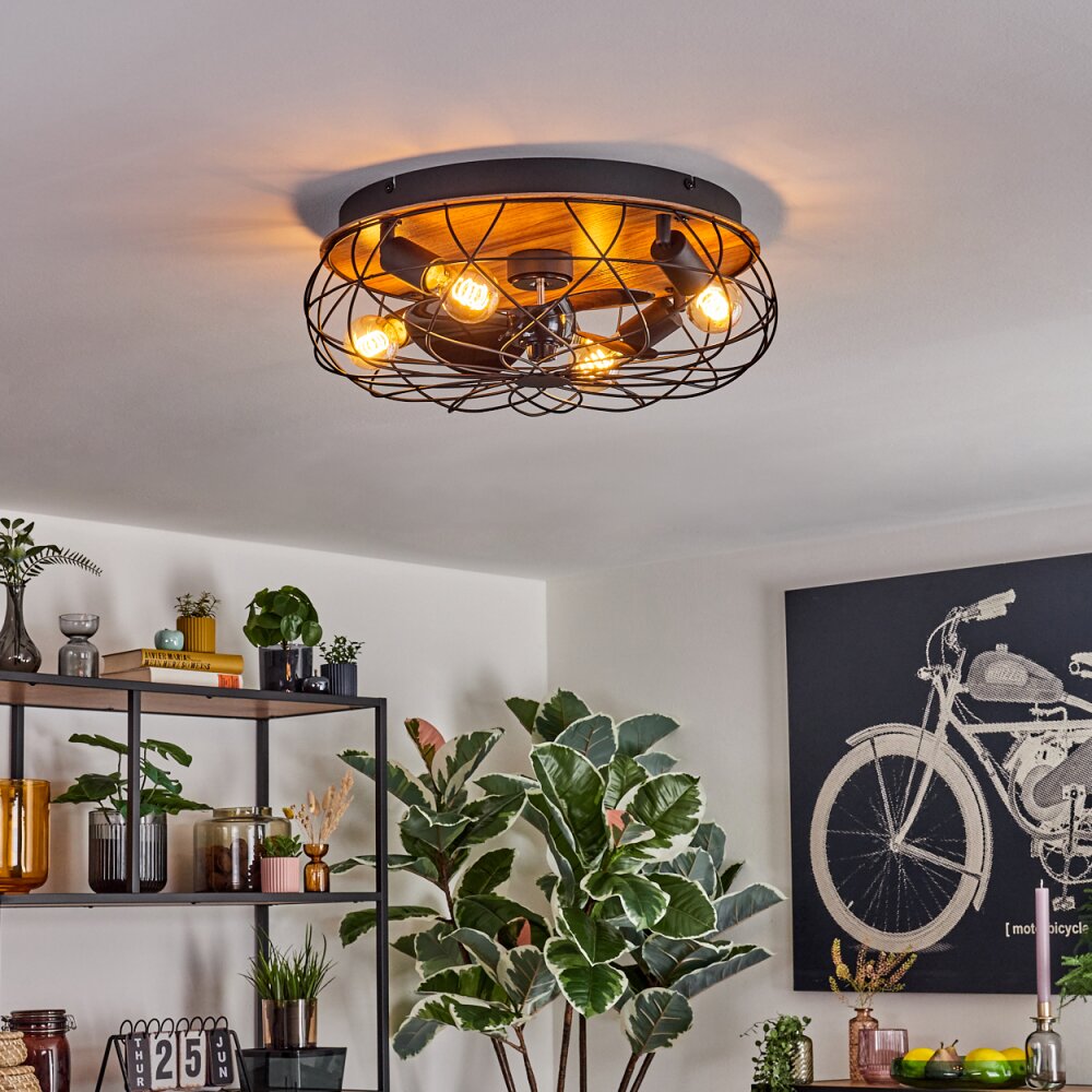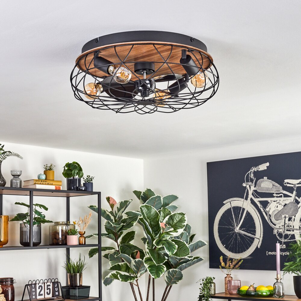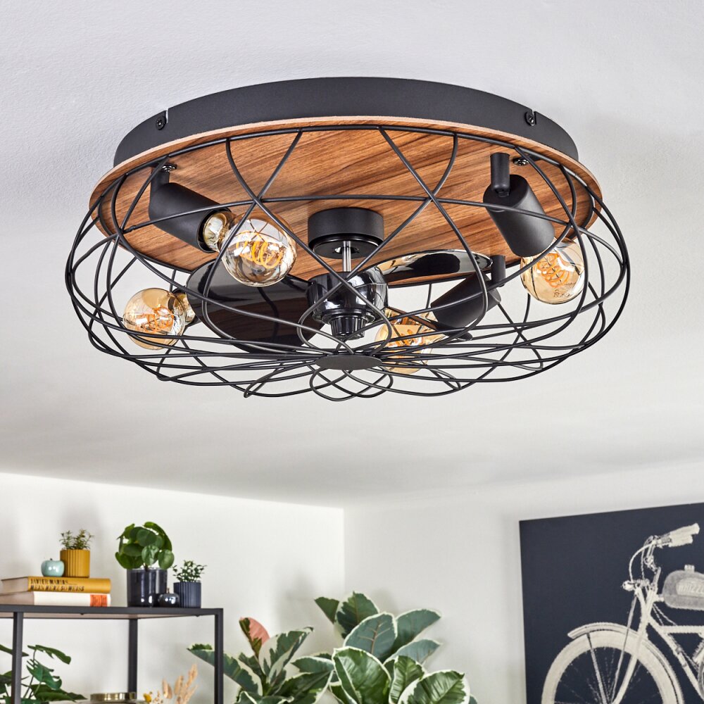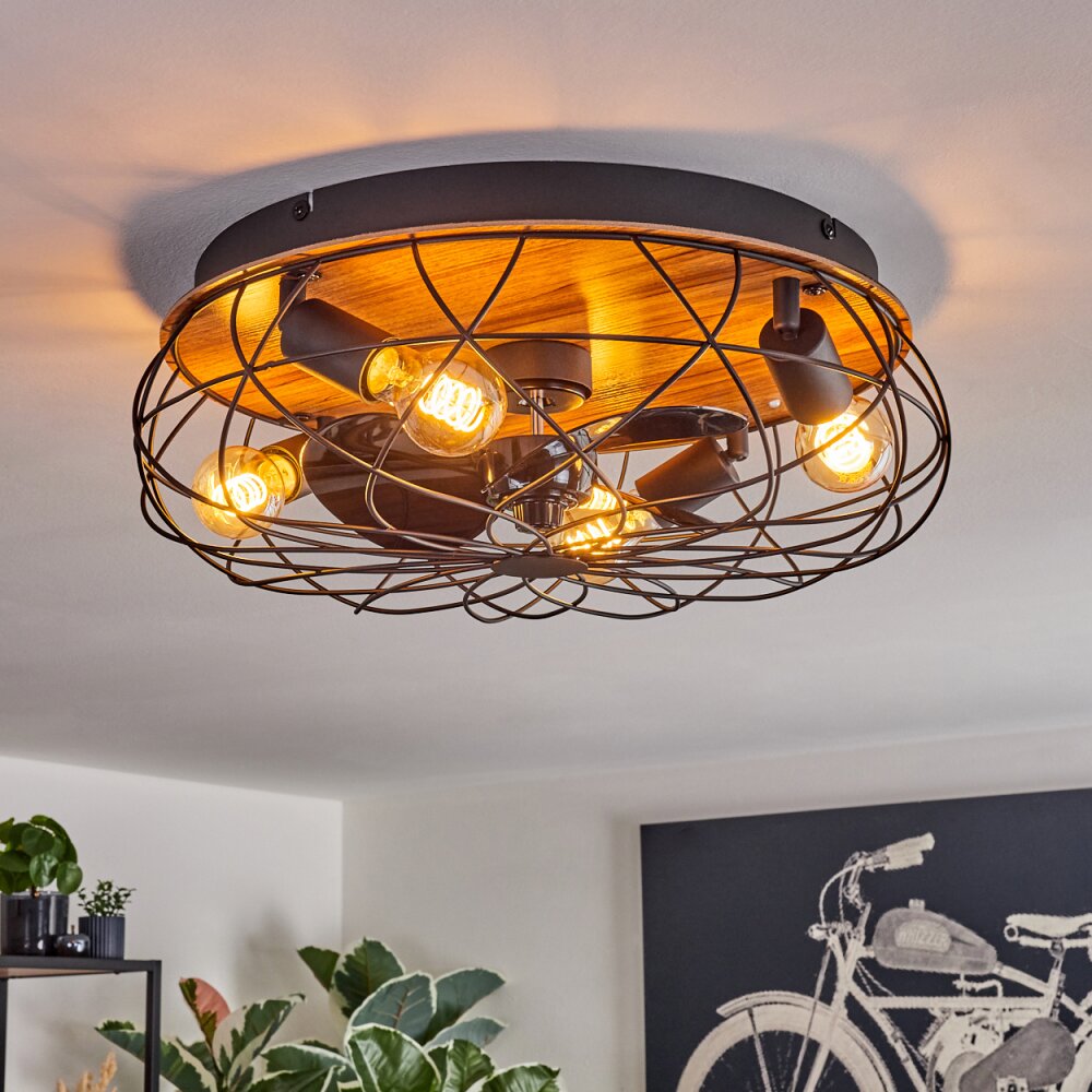 Tourais Plafondlamp, Plafondventilator met verlichting LED houtlook, Zwart, 4-lichts, Afstandsbediening