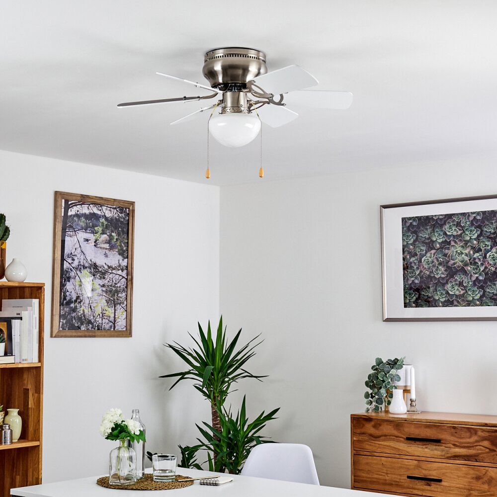 Trillo plafondventilator Grijs, Nikkel mat, Wit, 1-licht