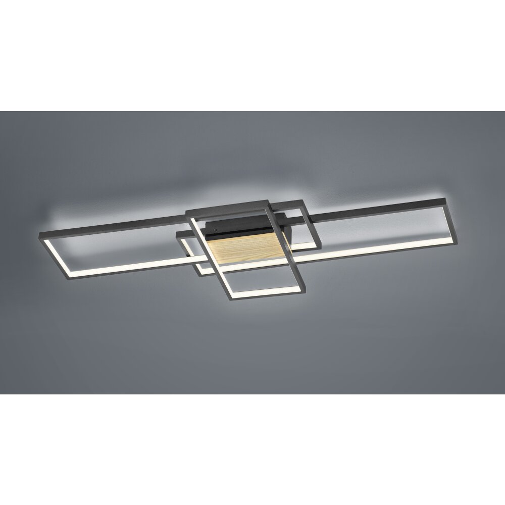 Macos Plafondlamp LED houtlook, Zwart, 1-licht