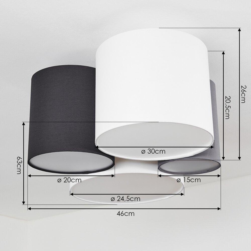 Trisett Plafondlamp Grijs, Zwart, Wit, 4-lichts