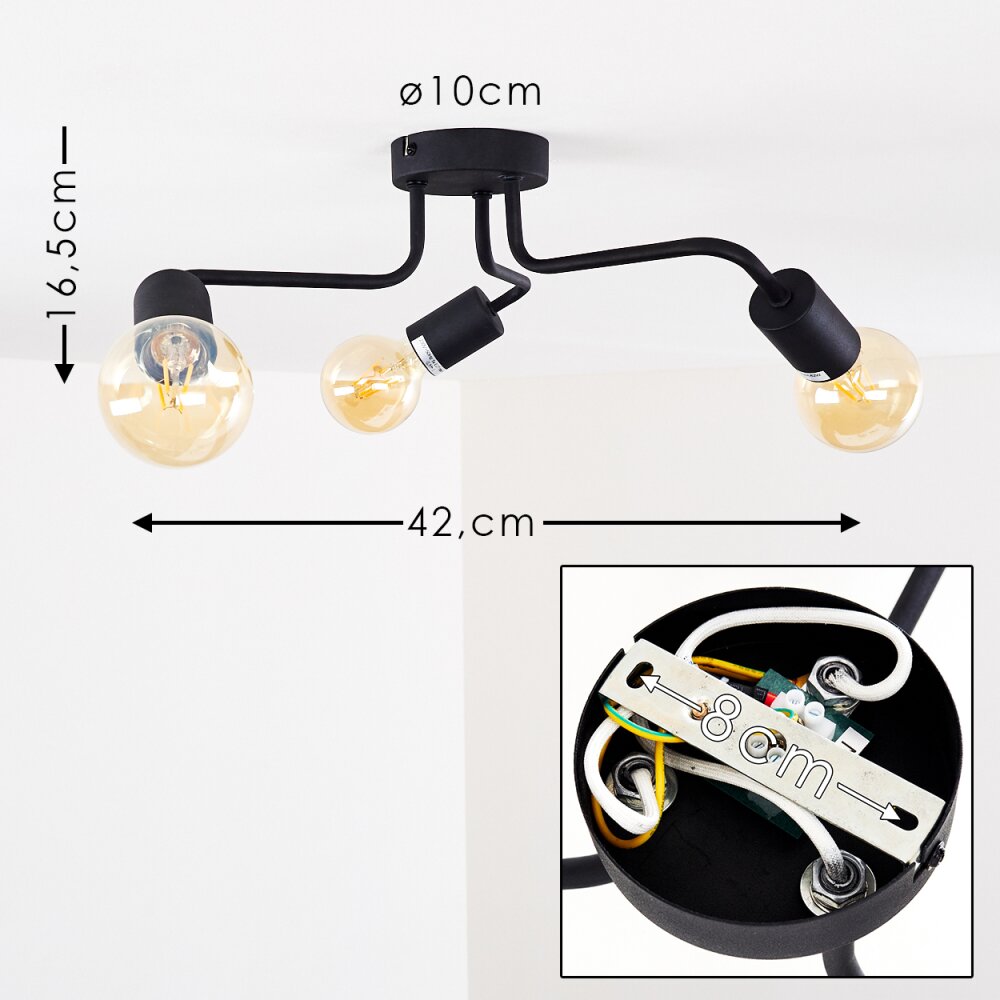 Montgomery Plafondlamp Natuurlijke kleuren, Zwart, 3-lichts