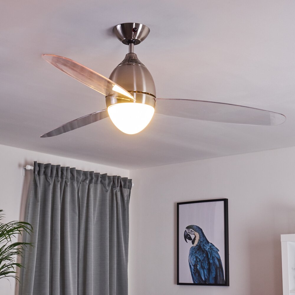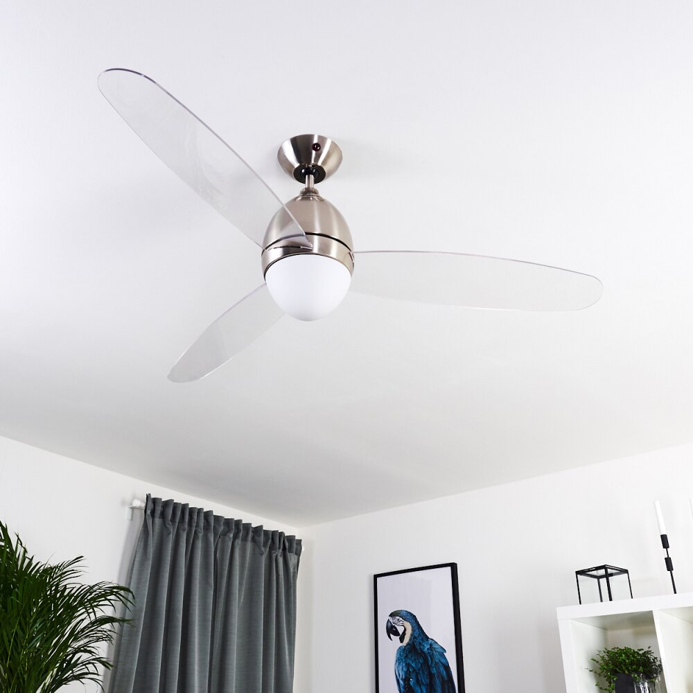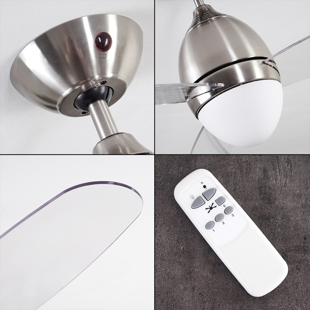 Varazze plafondventilator Nikkel mat, Transparant, Helder, 1-licht, Afstandsbediening
