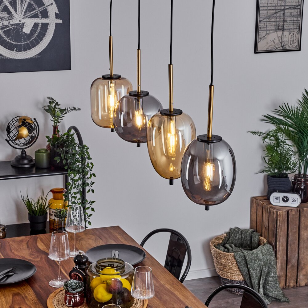 Verbania Hanger Messing, Zwart, 4-lichts