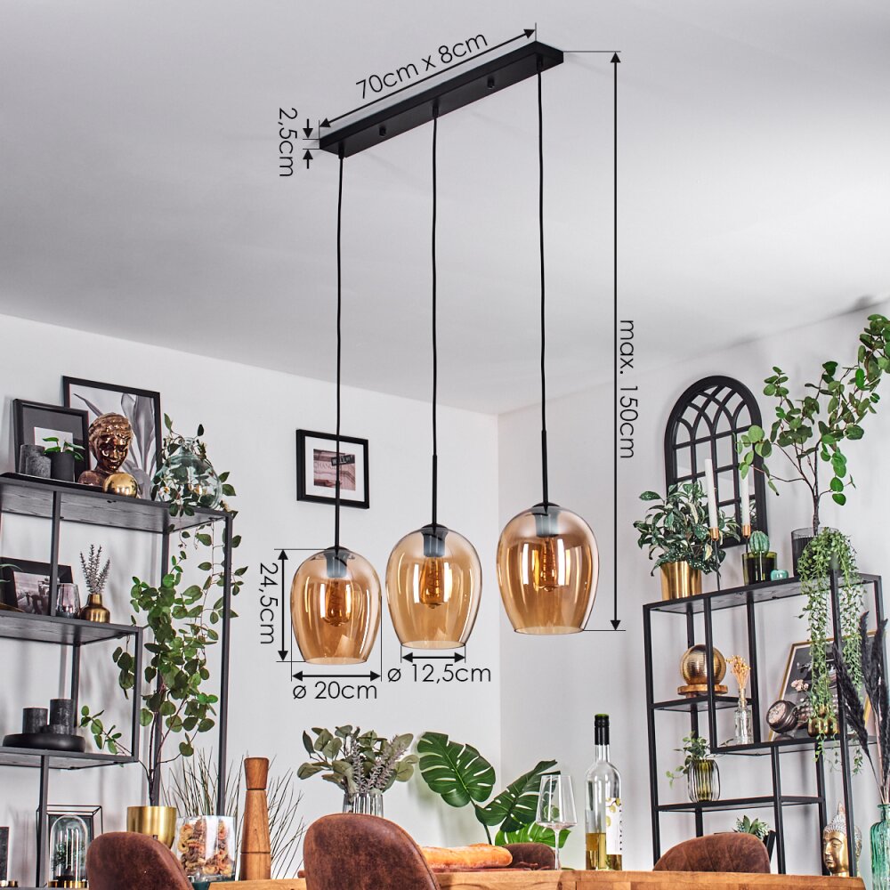 Vevino Hanglamp Zwart, 3-lichts