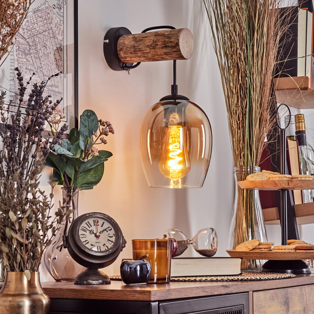 Vevino Wandlamp Natuurlijke kleuren, Zwart, 1-licht