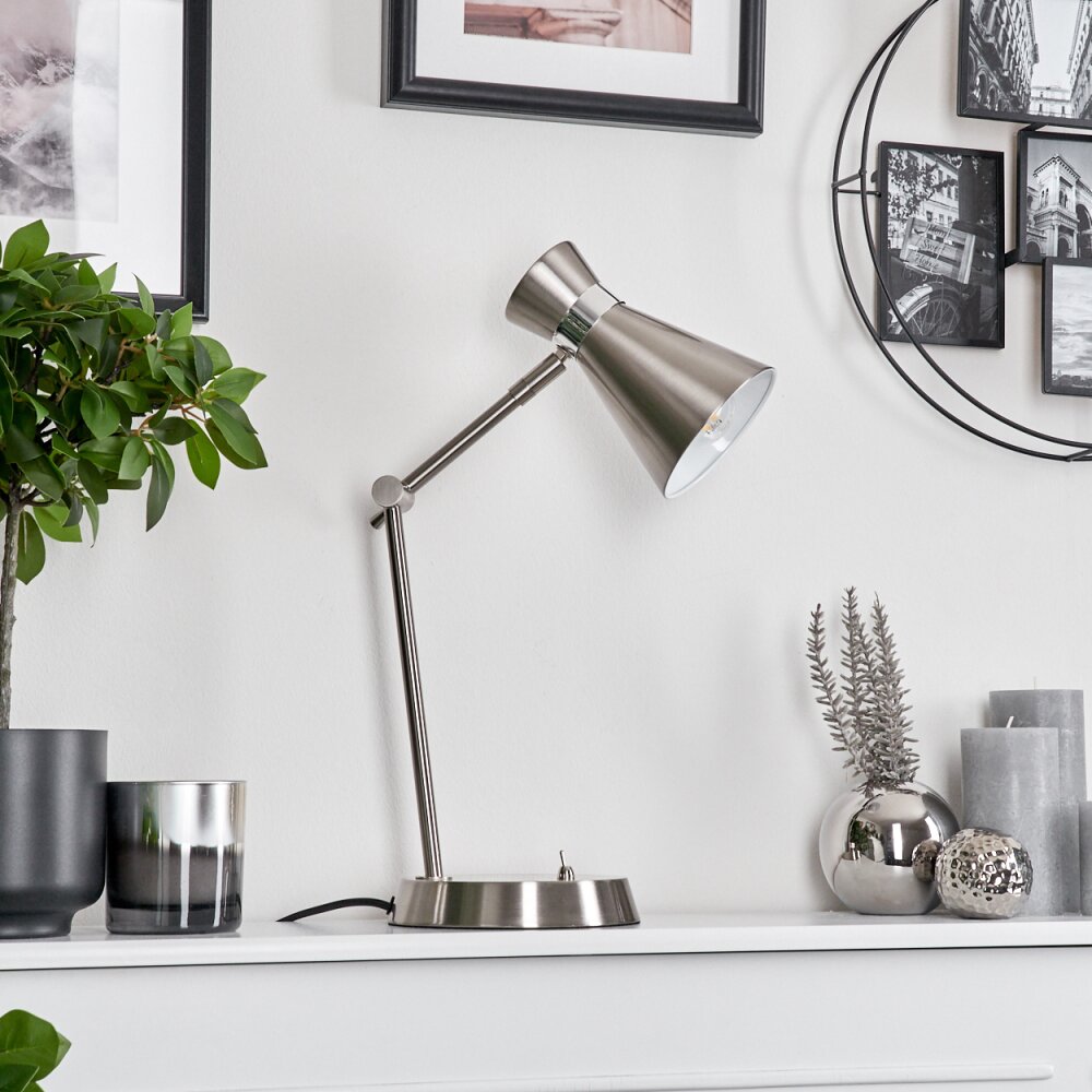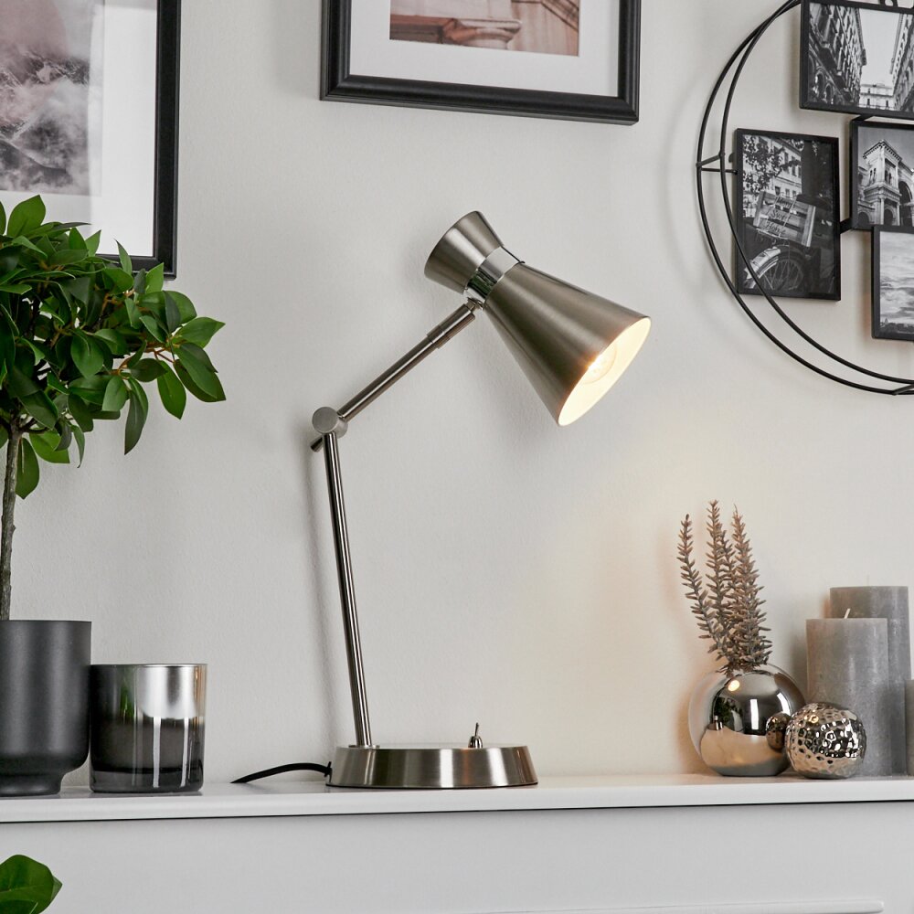 Felan Bureaulamp, Tafellamp, Leeslamp Chroom, Nikkel mat, 1-licht