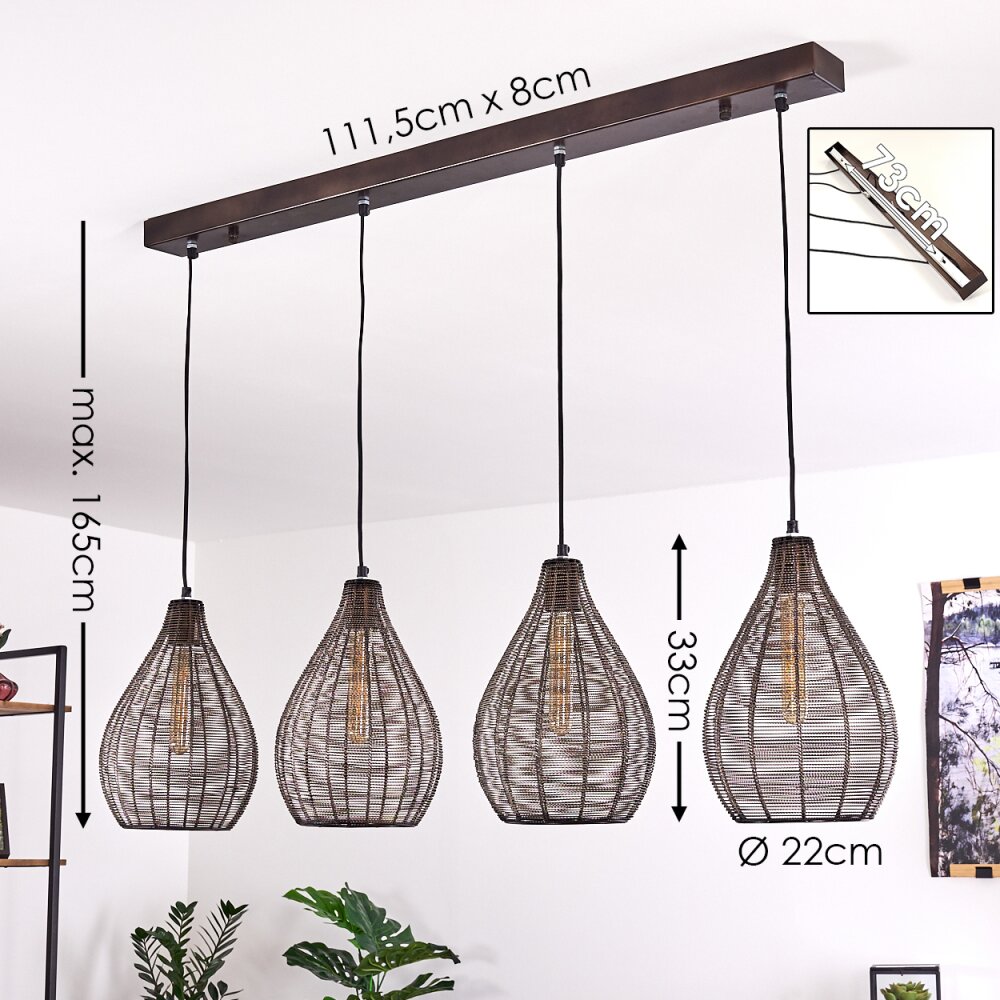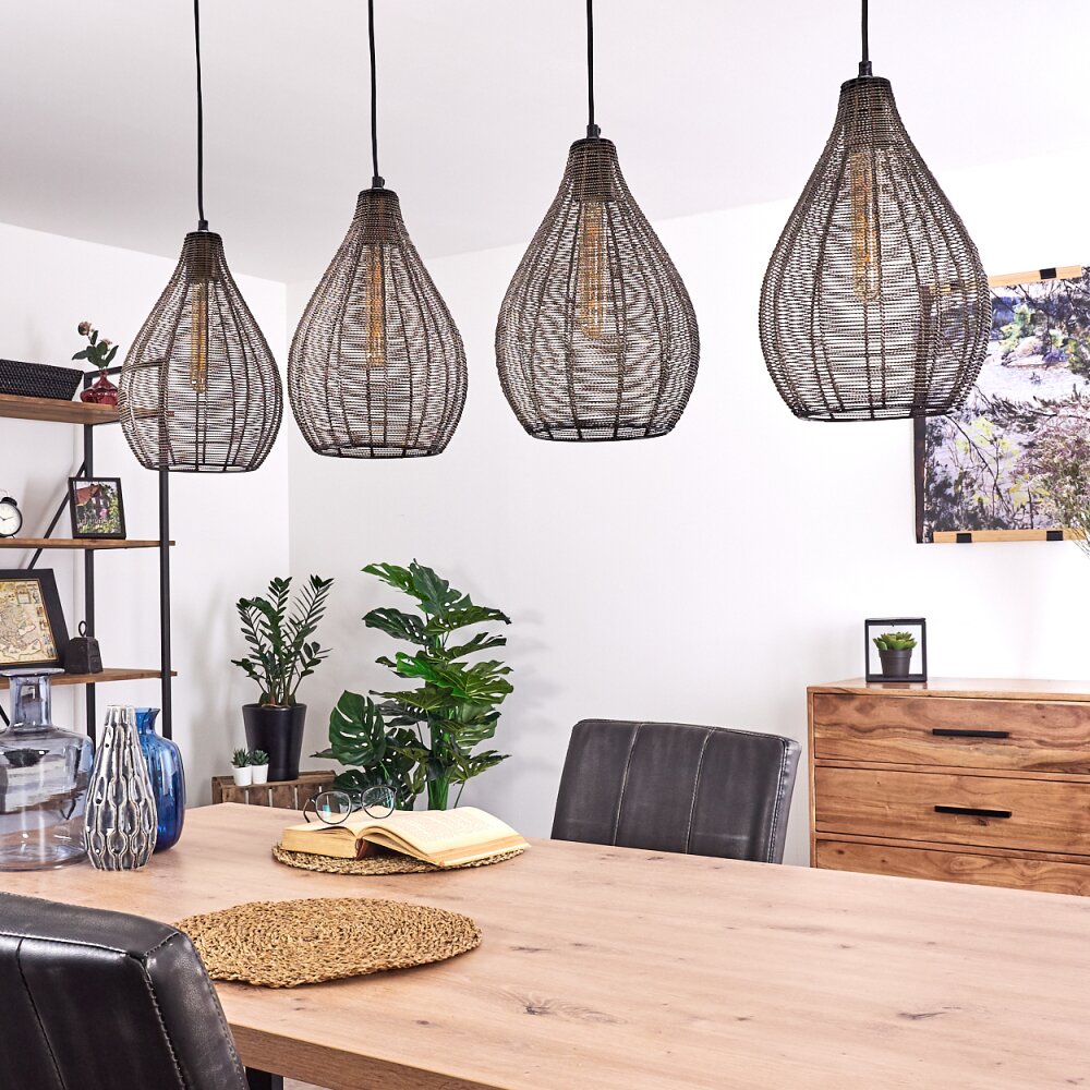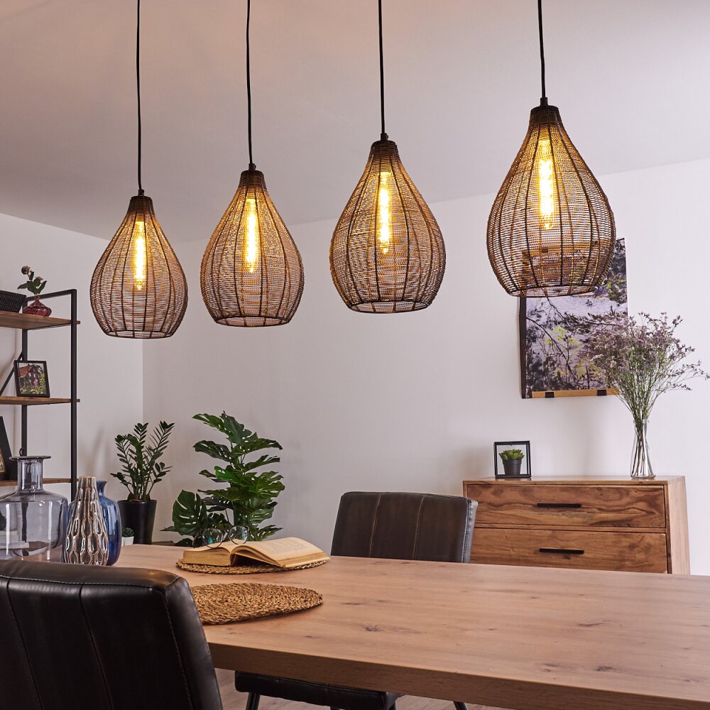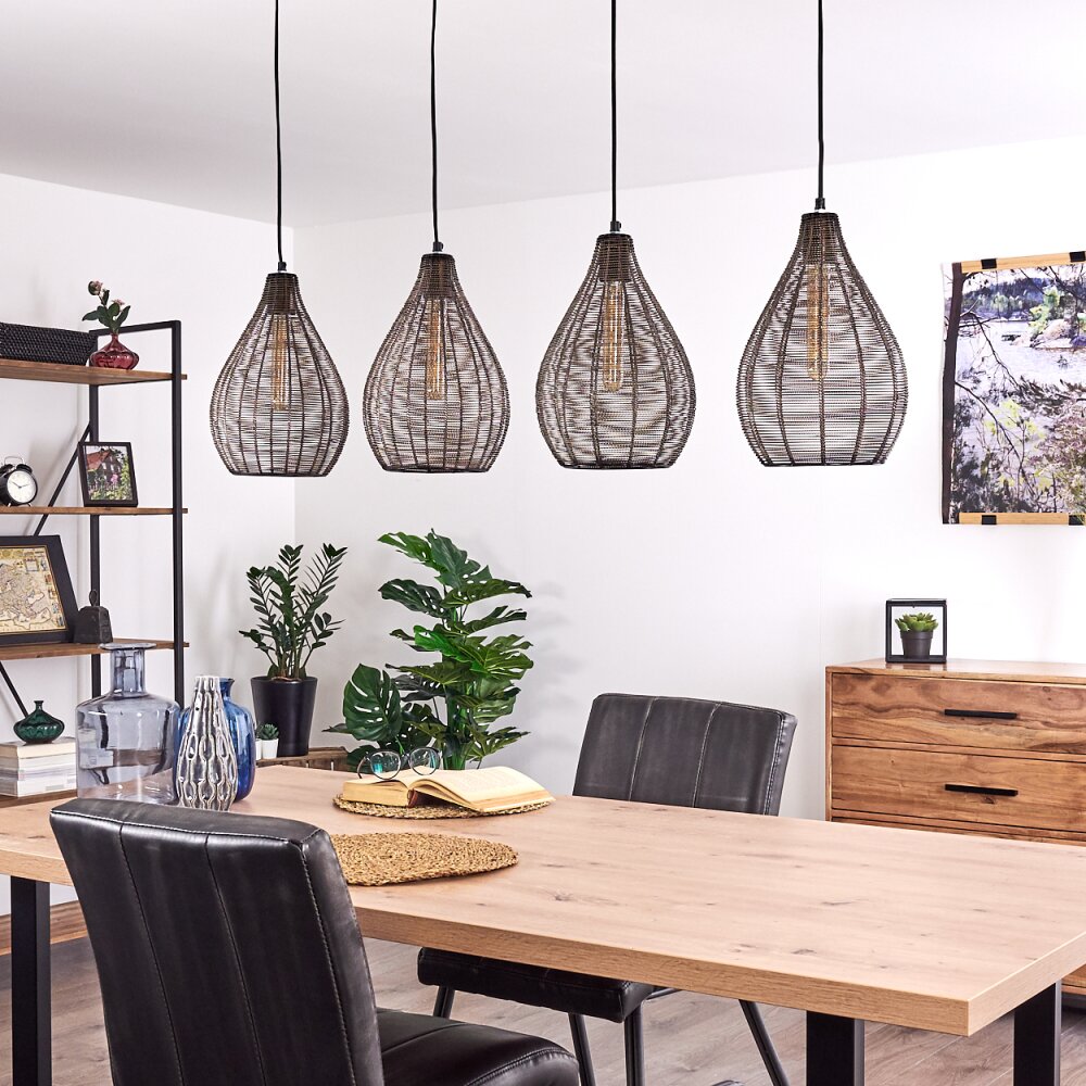 Rhodes Hanglamp Hout donker, Zwart, 4-lichts