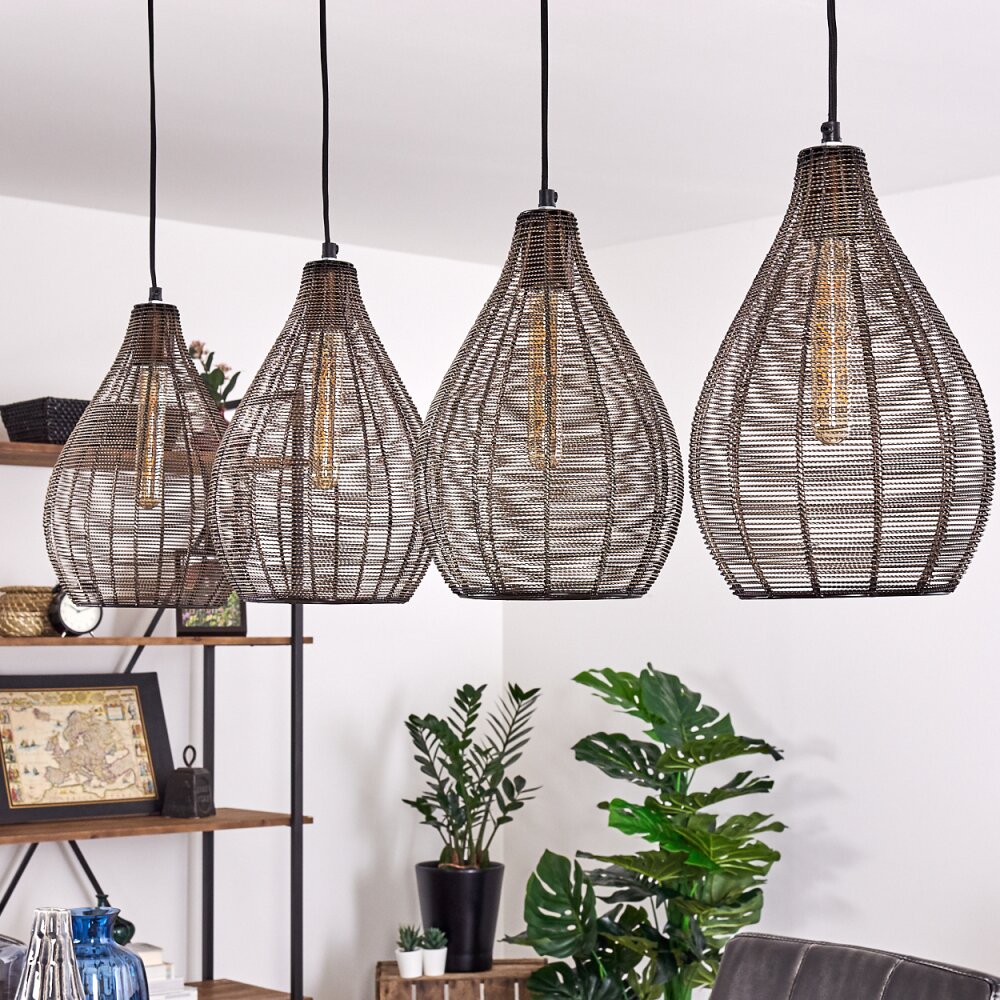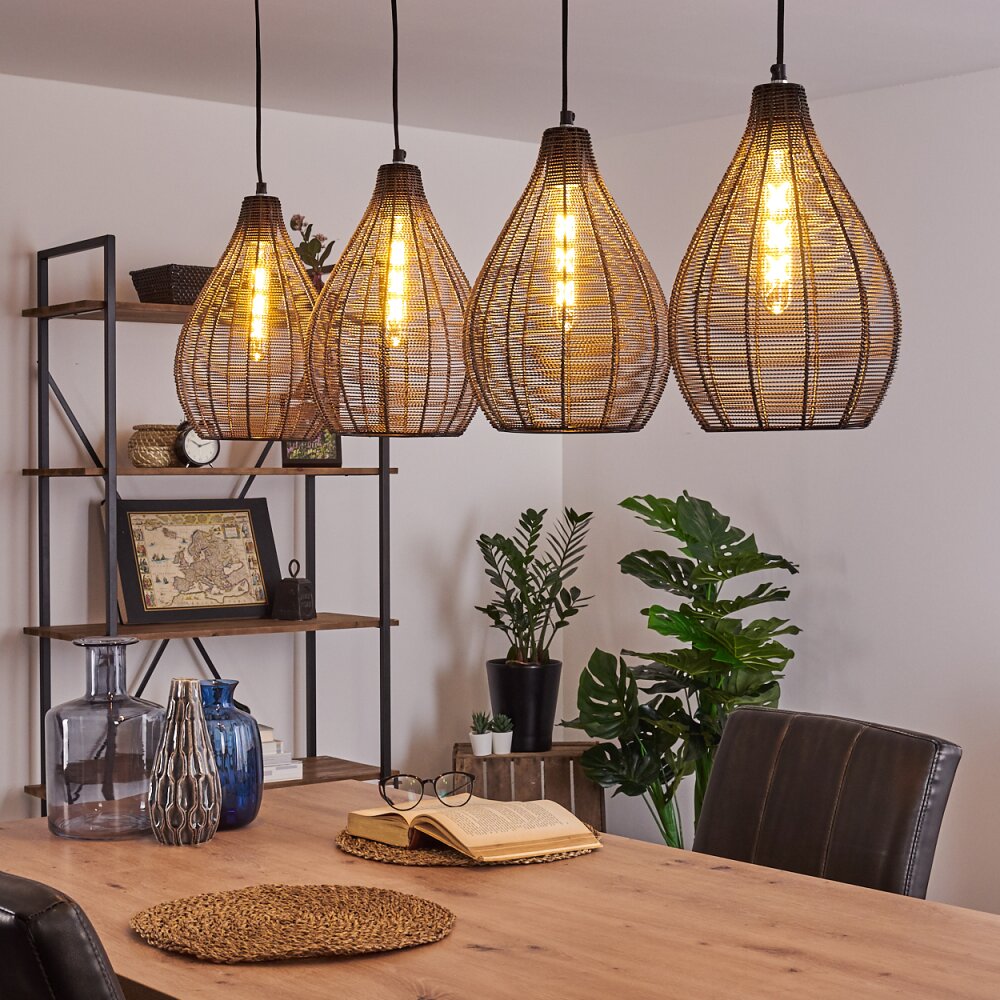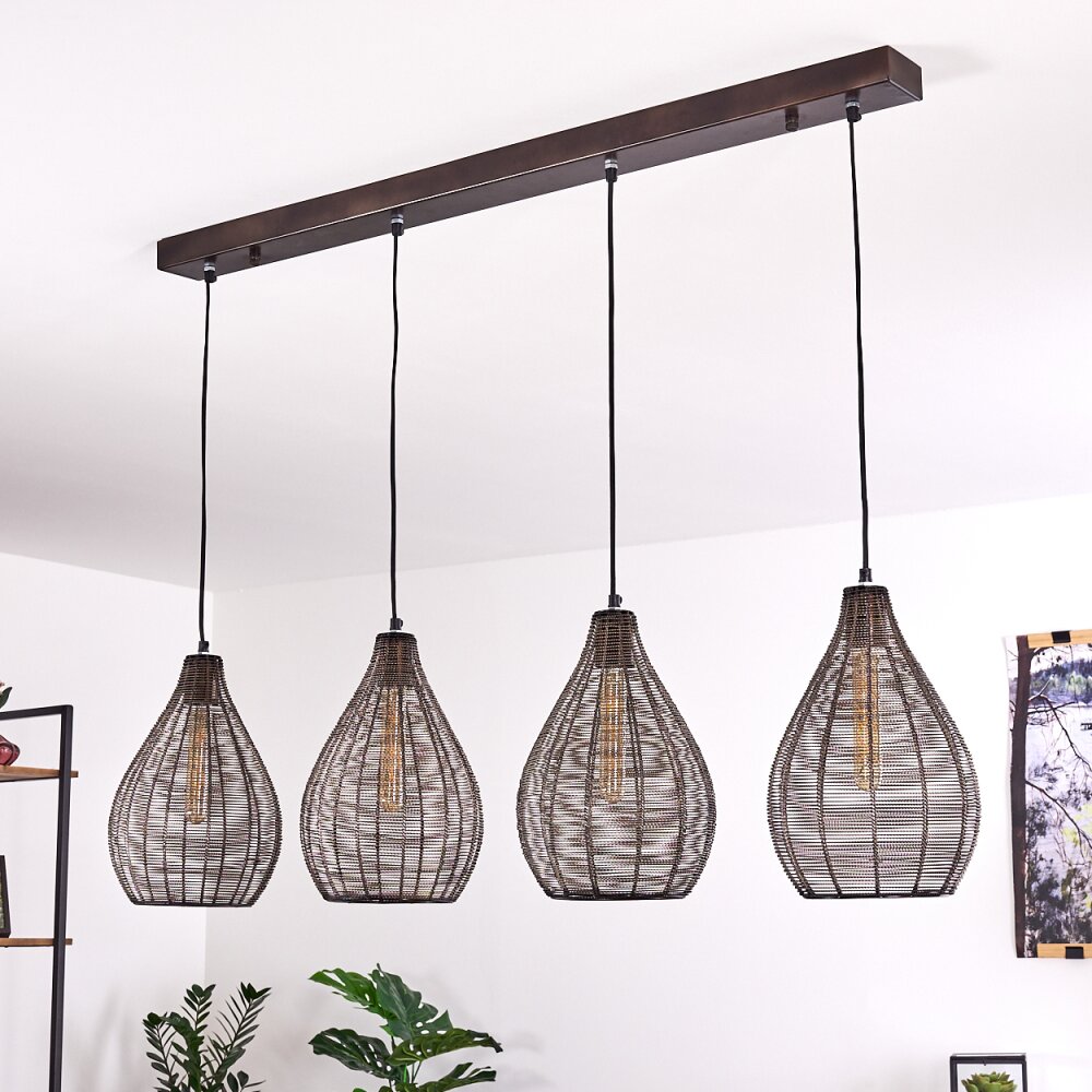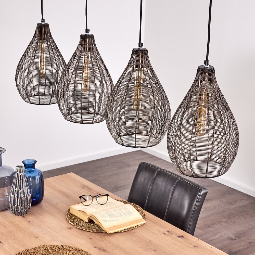 Rhodes Hanglamp Hout donker, Zwart, 4-lichts