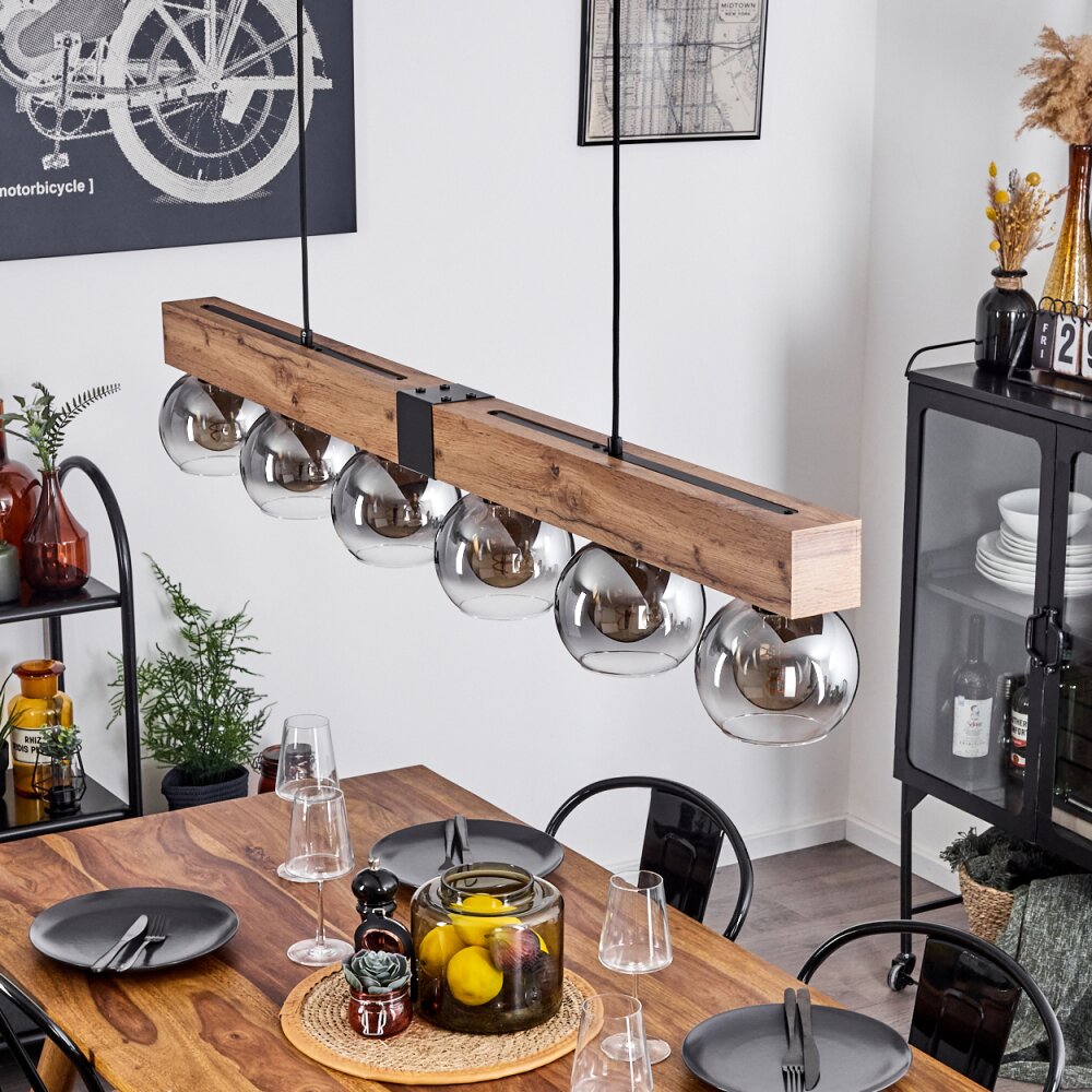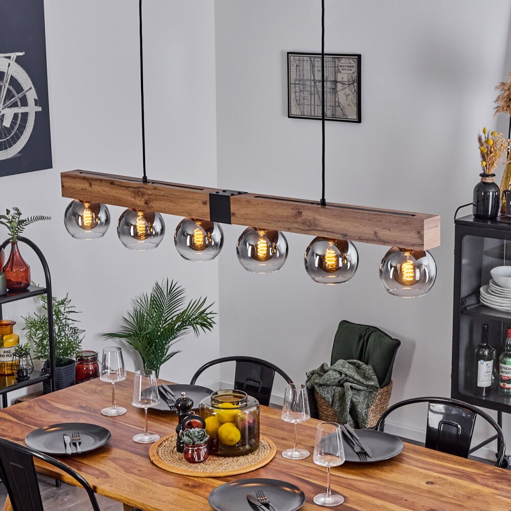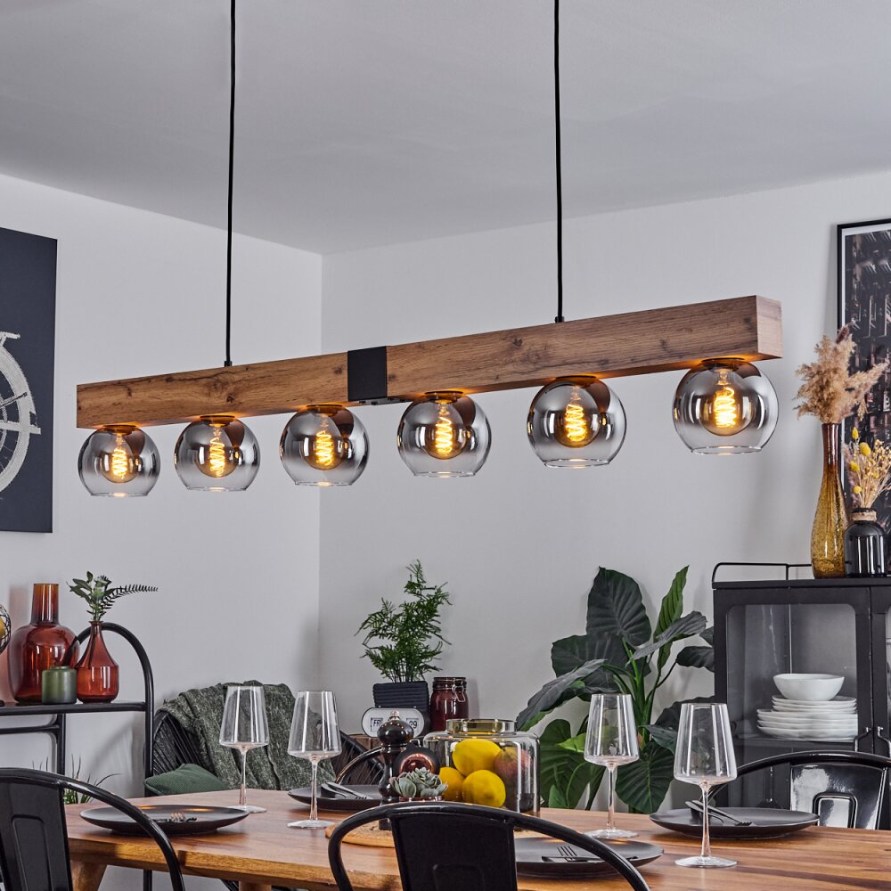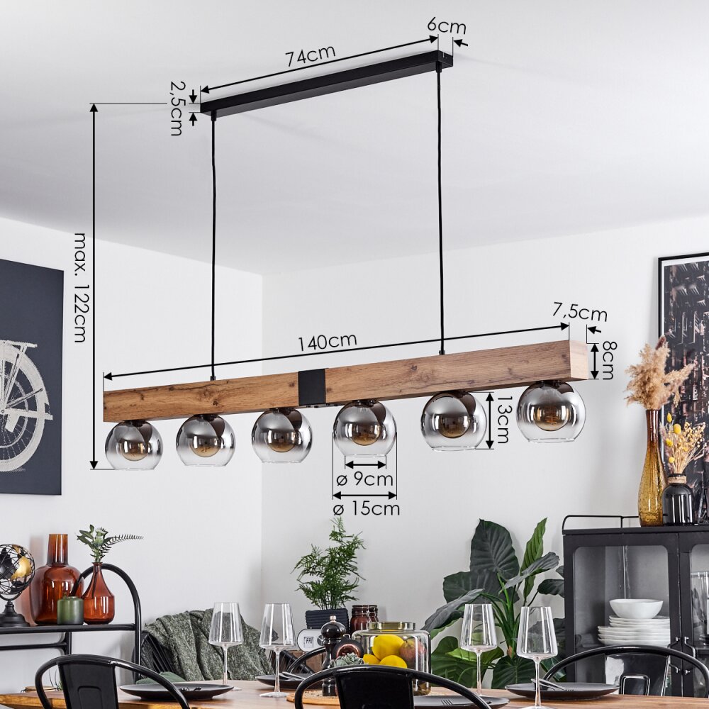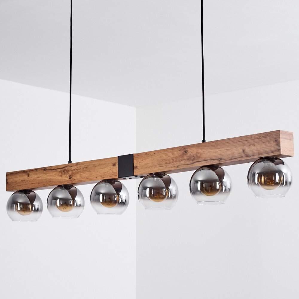 Vouhet Hanglamp Bruin, houtlook, Zwart, 6-lichts
