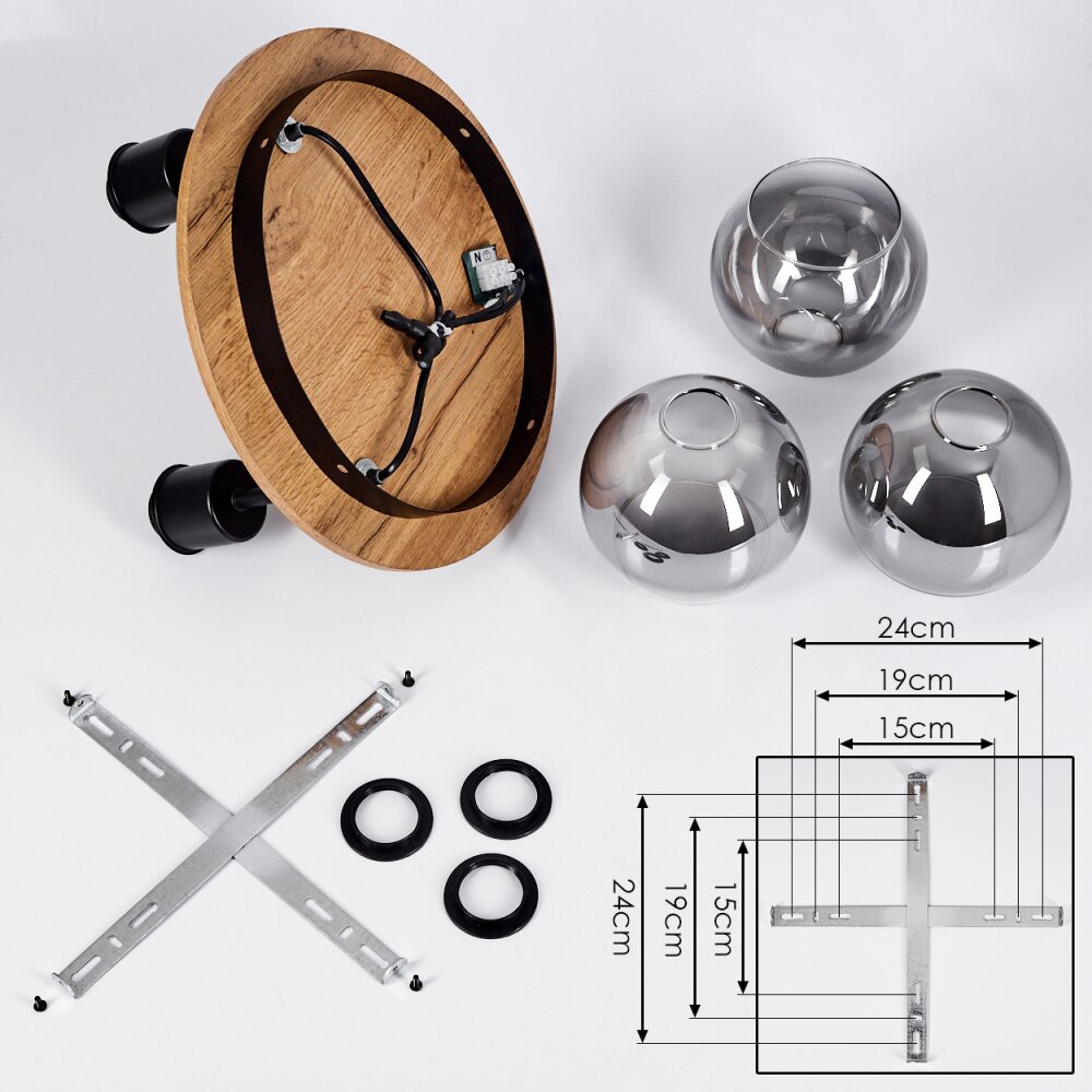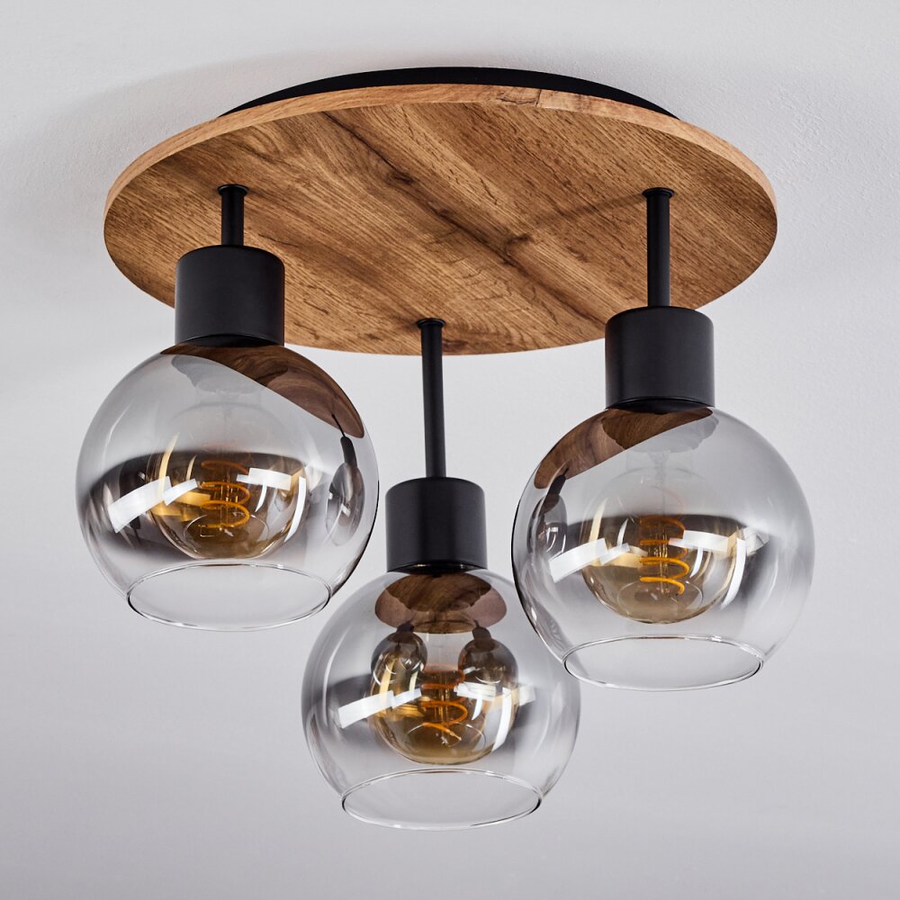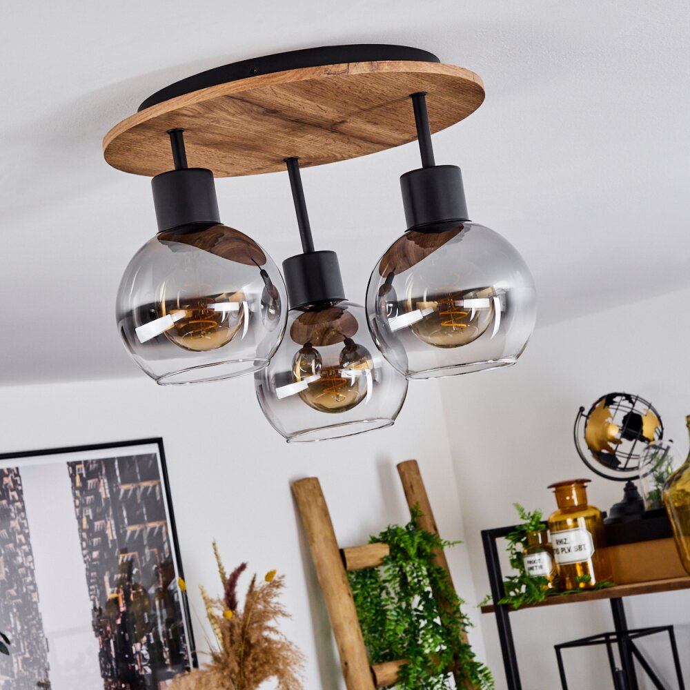 Vouhet Plafondlamp Bruin, houtlook, Zwart, 3-lichts
