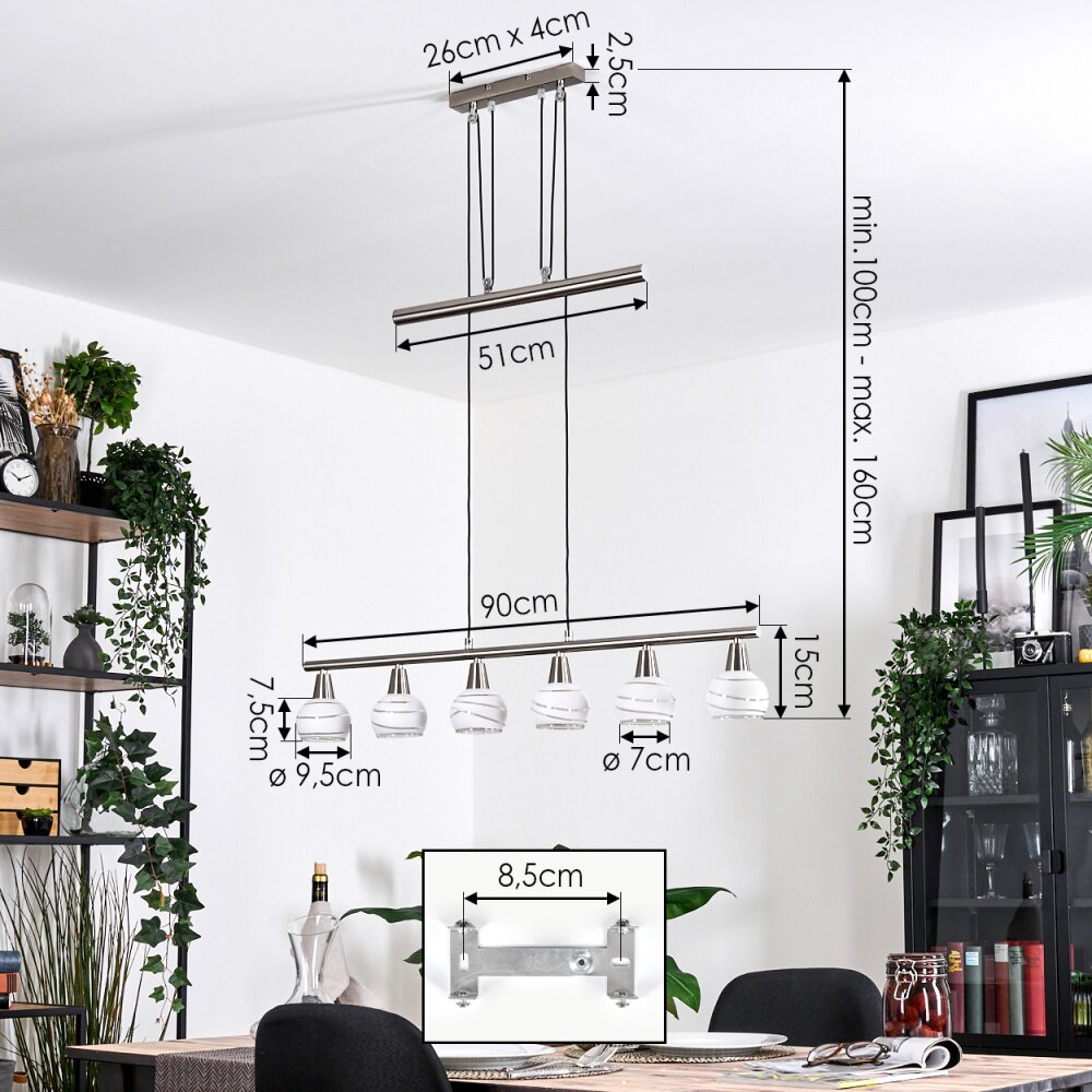 Warga Hanglamp, Kogellampje, Hanglamp Nikkel mat, 6-lichts