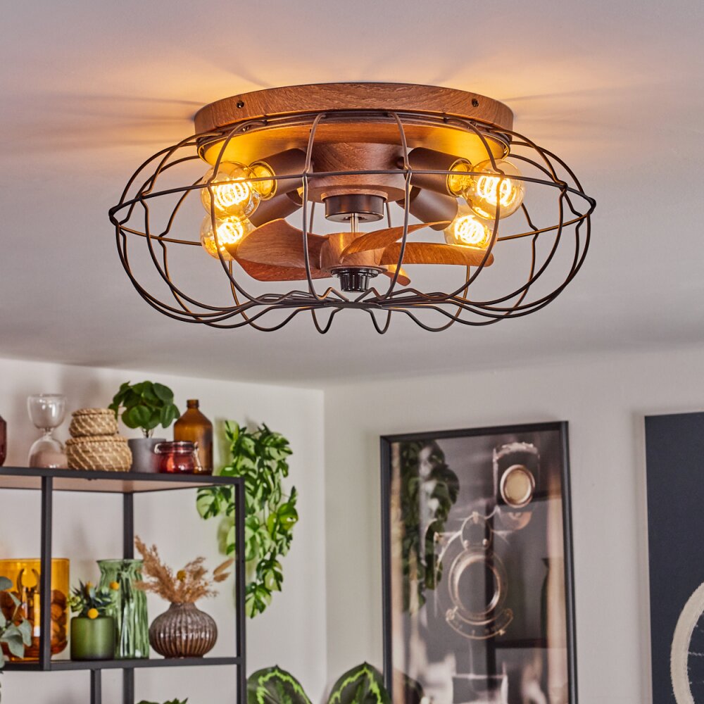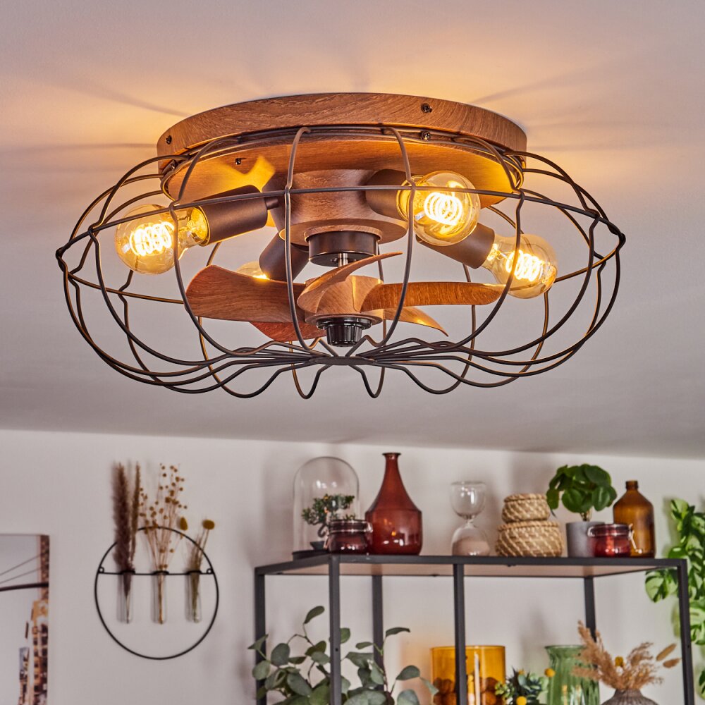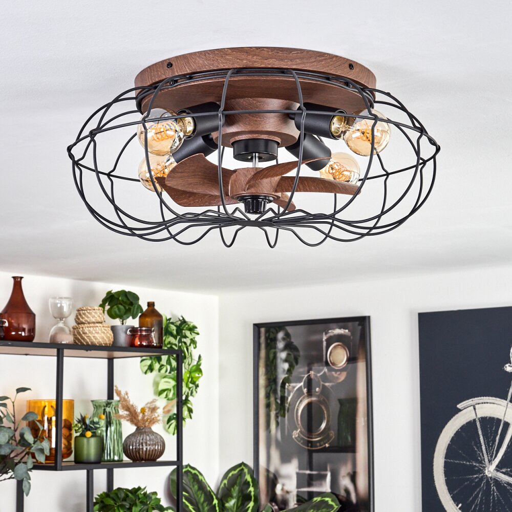 Wemude Plafondlamp Bruin, Zwart, 4-lichts, Afstandsbediening