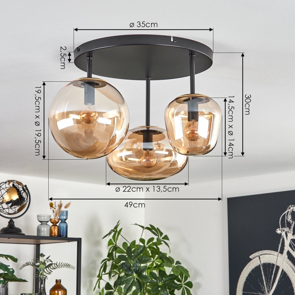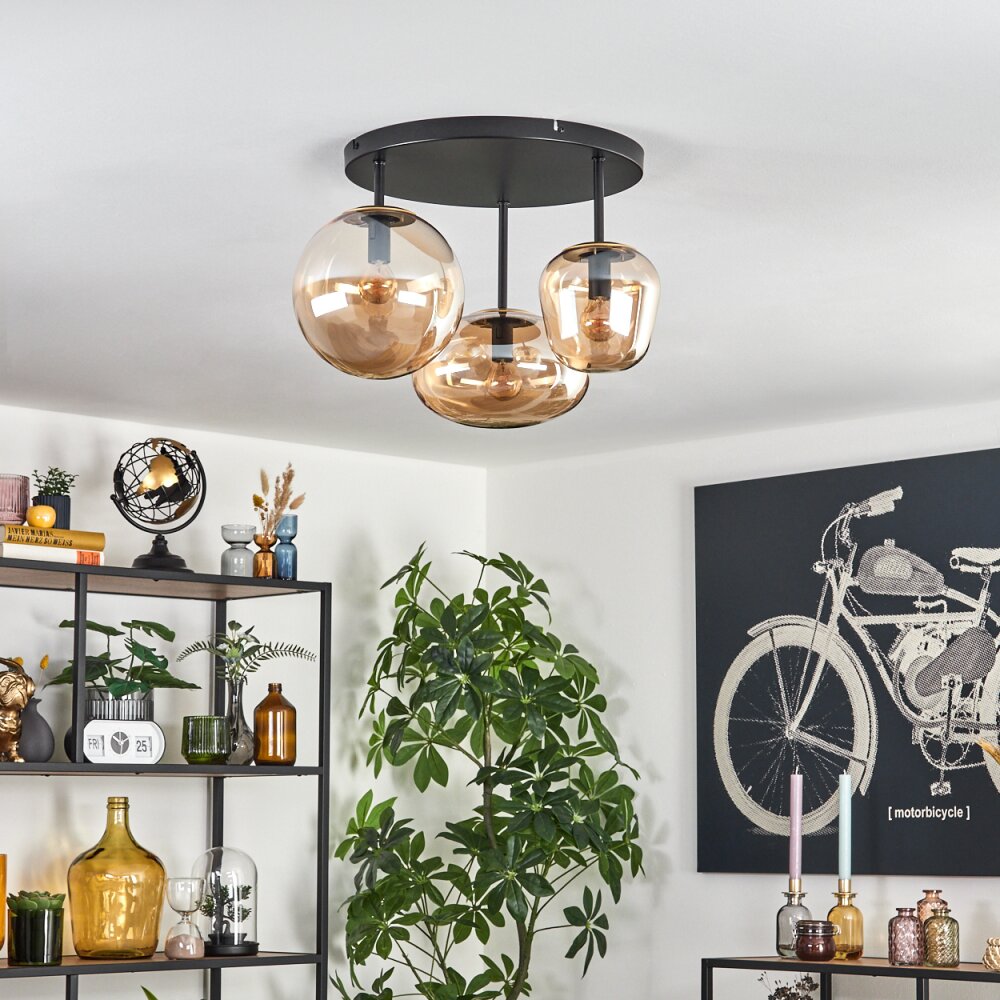 Zernez Plafondlamp Zwart, 3-lichts