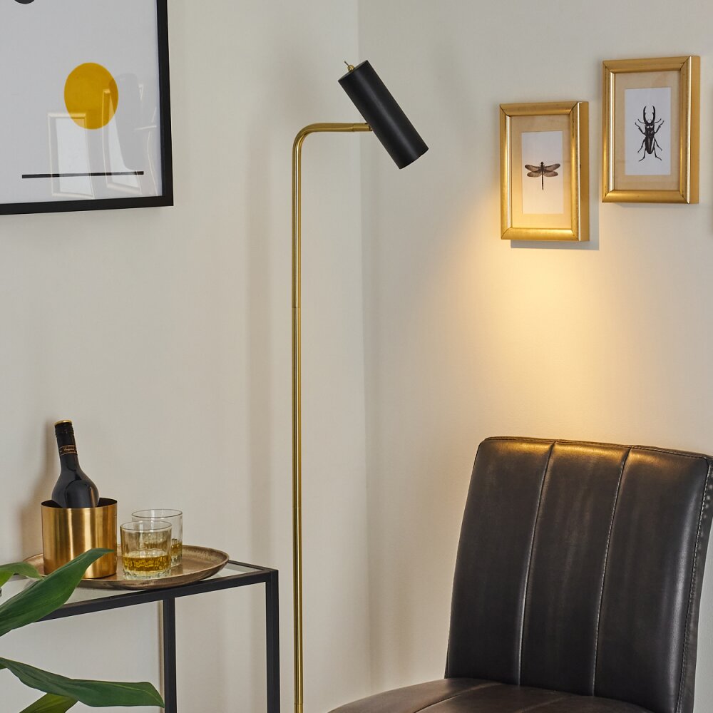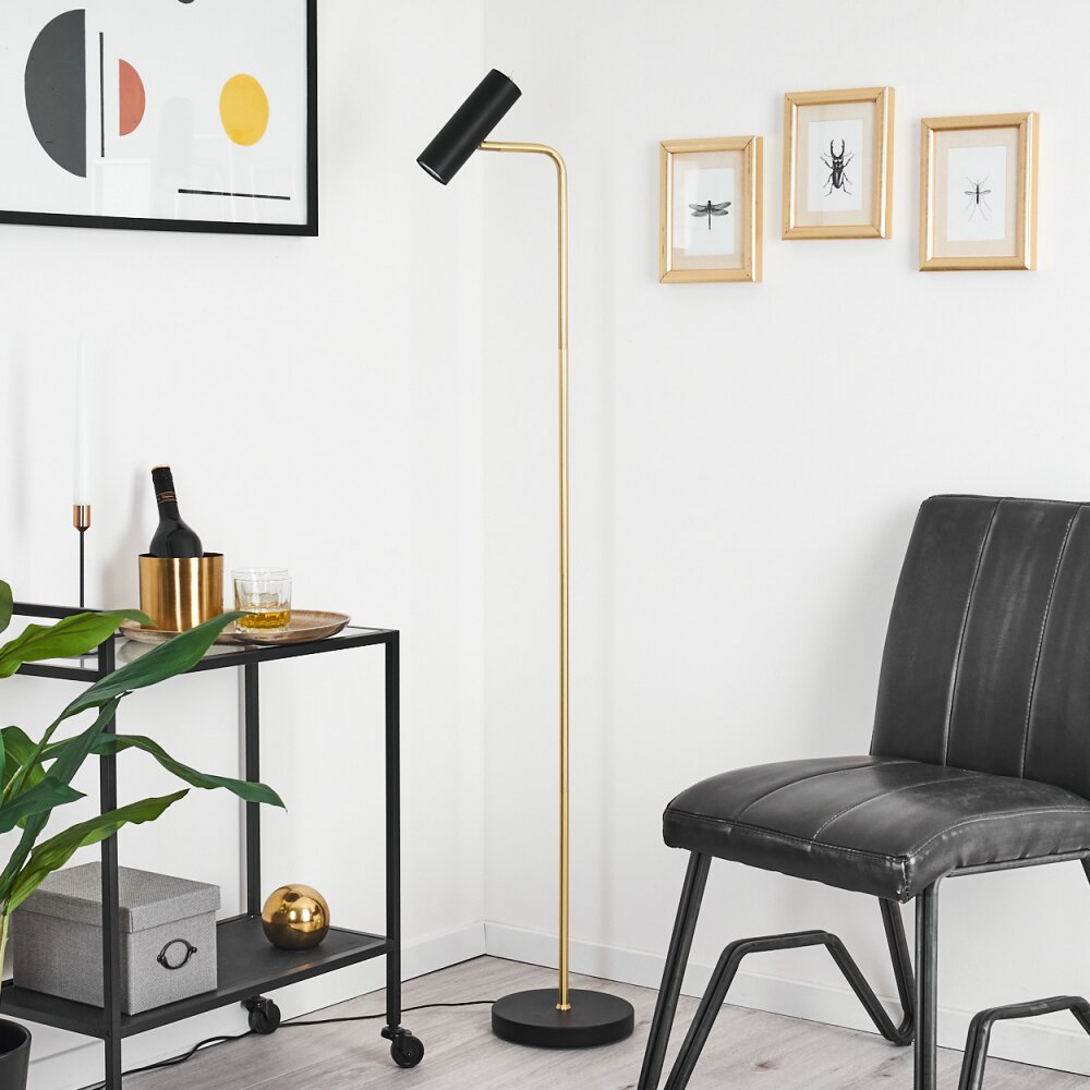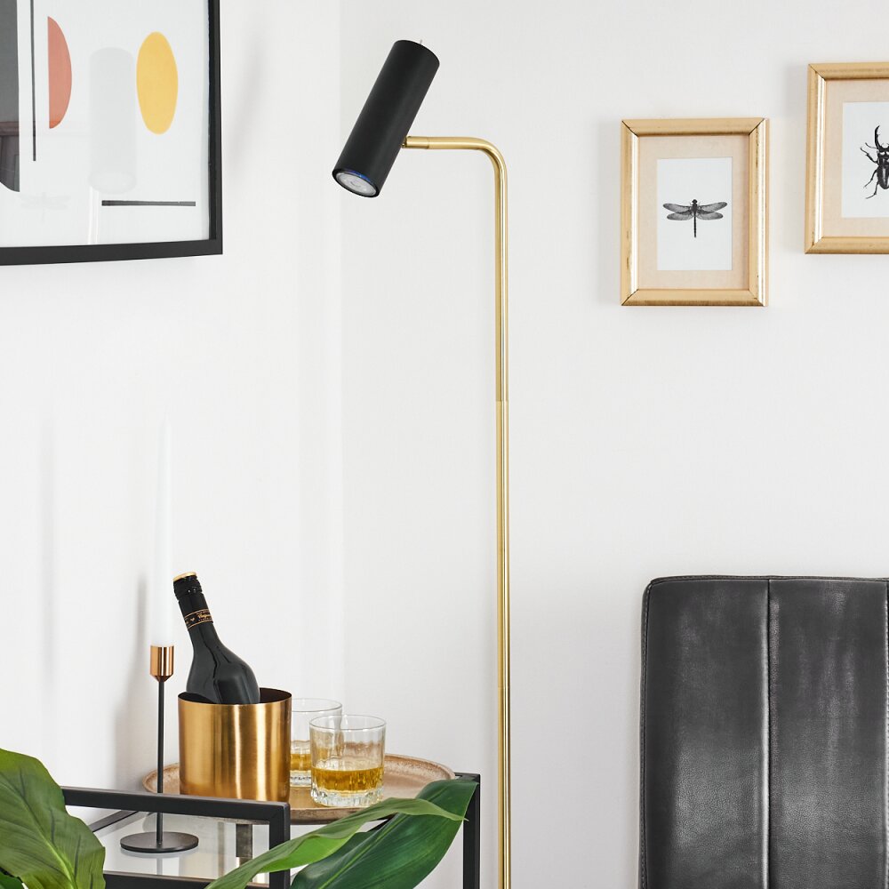 Zuoz Staande lamp Messing, Zwart, 1-licht